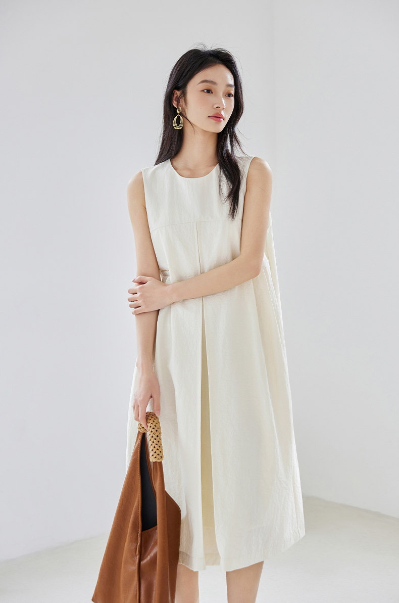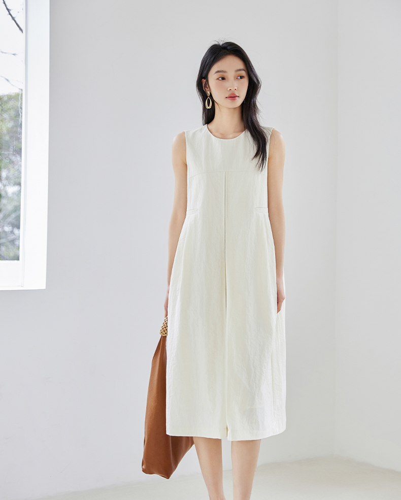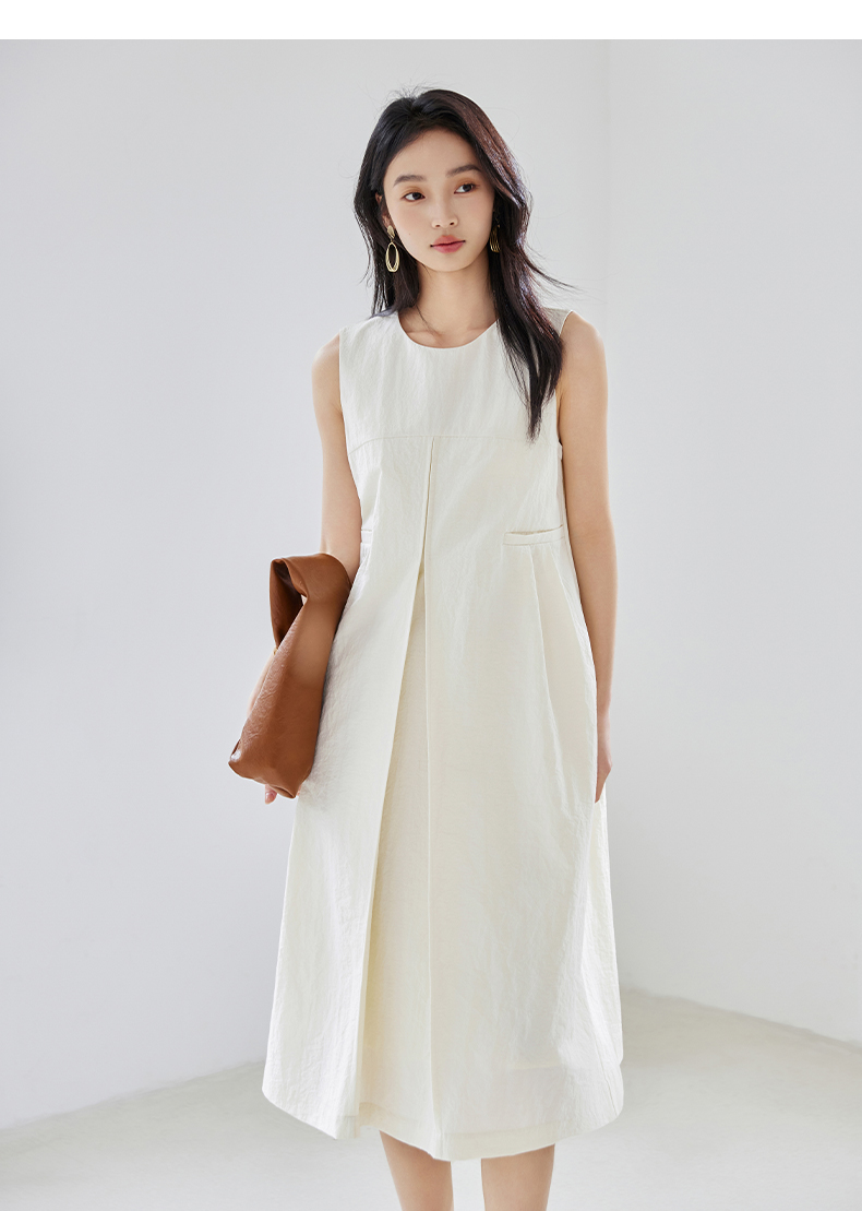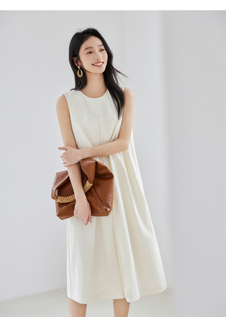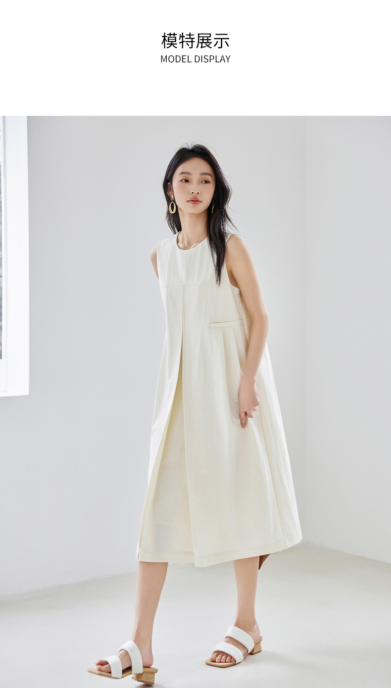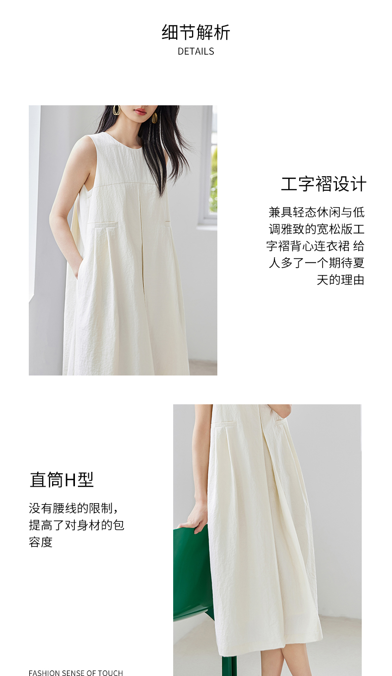IC 法式气质绝美白色休闲连衣裙新款夏季裙子女肌理宽松背心长裙