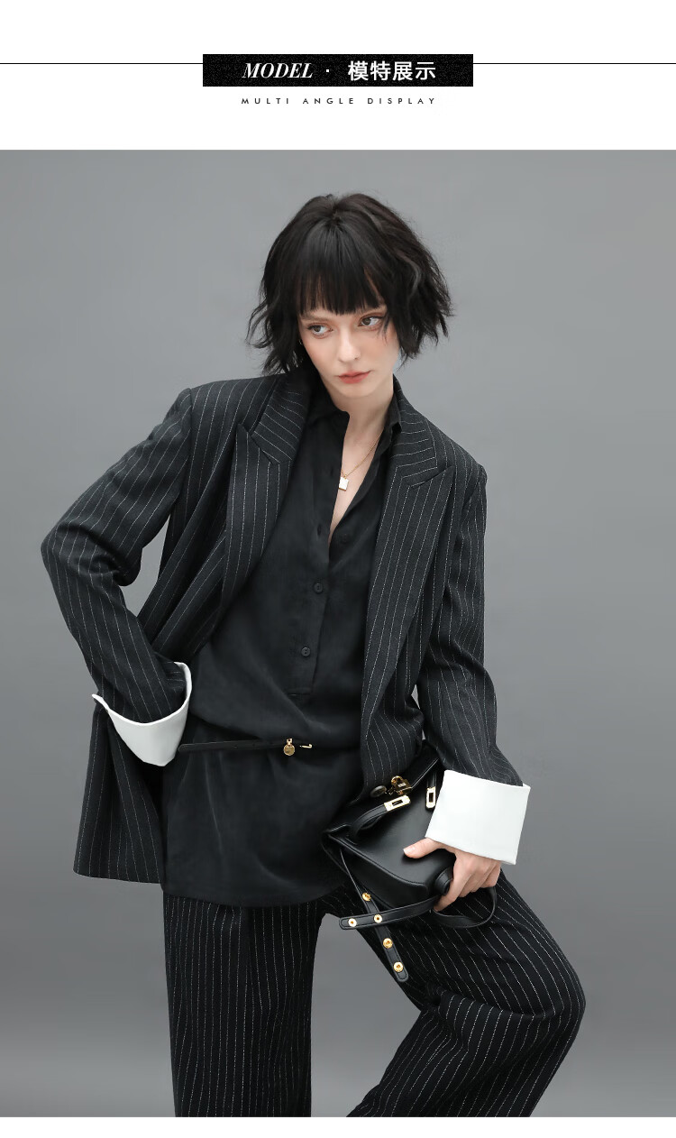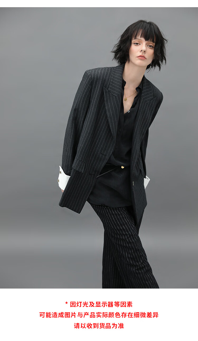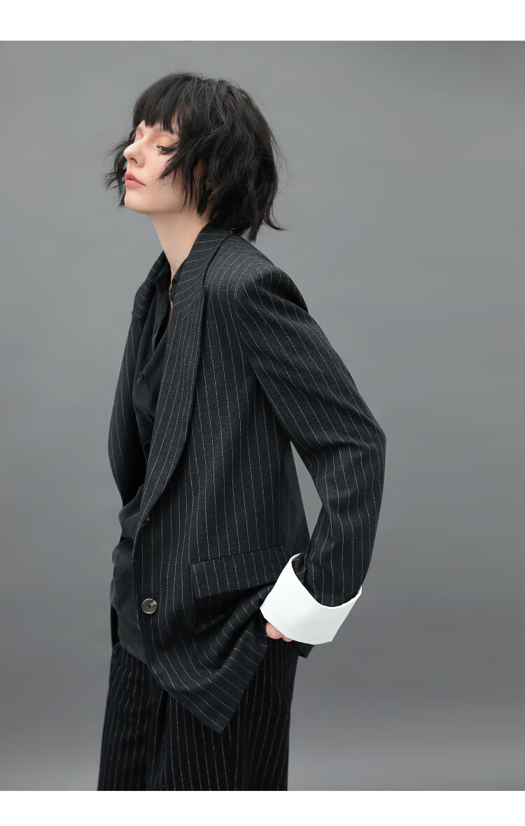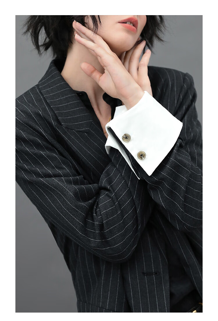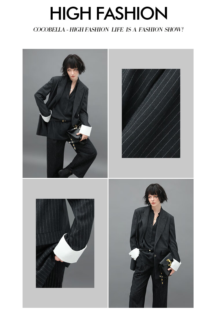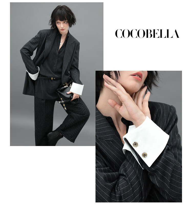 COCOBELLA色织条纹职业通勤西装女可拆卸撞色翻折袖西服SI535