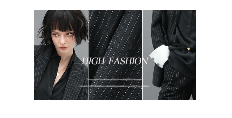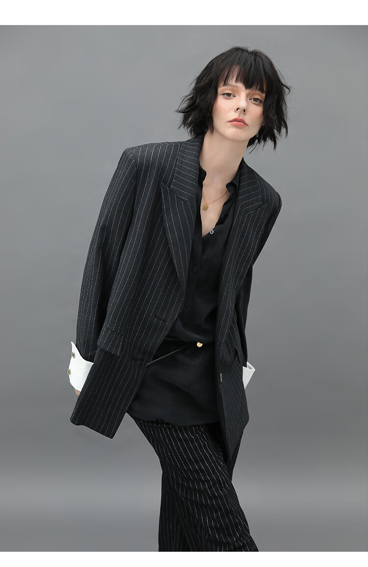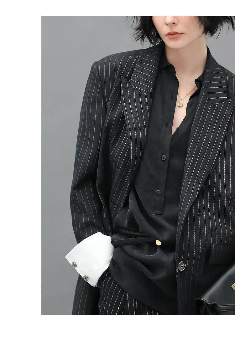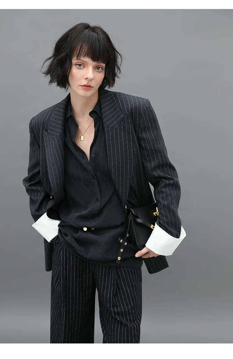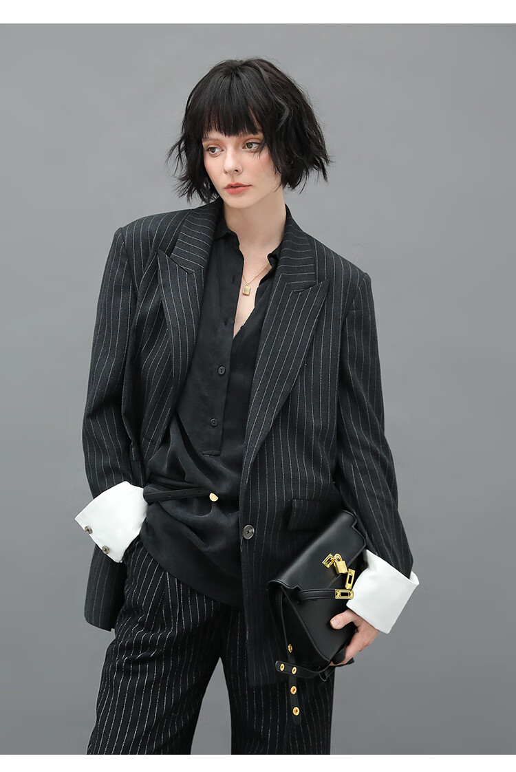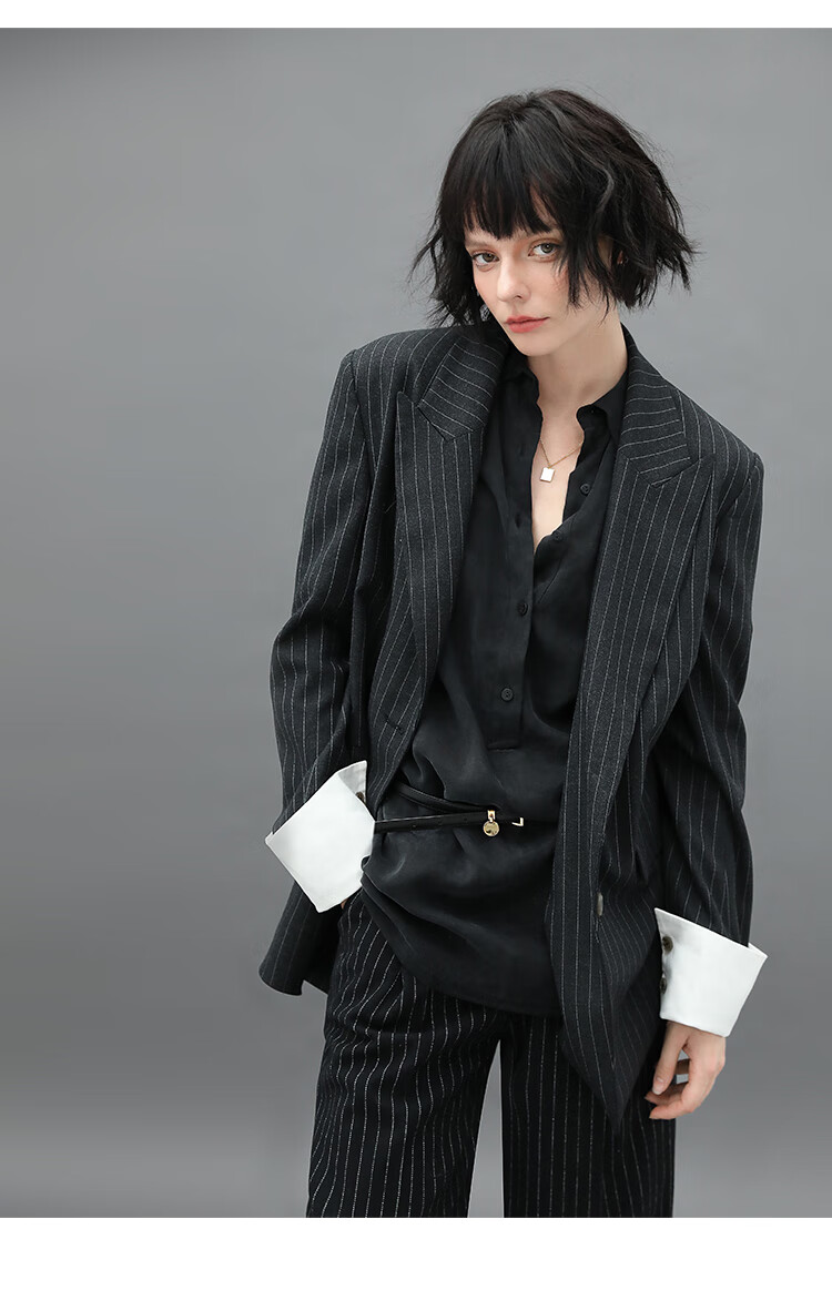 COCOBELLA色织条纹职业通勤西装女可拆卸撞色翻折袖西服SI535