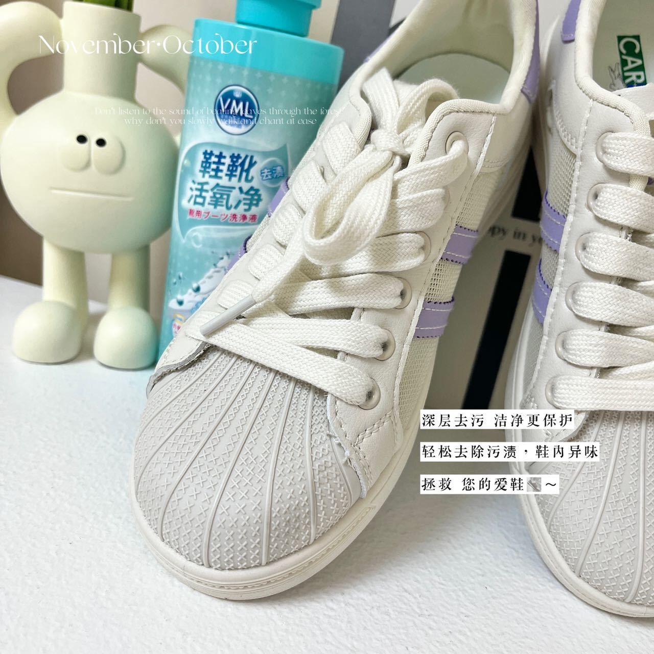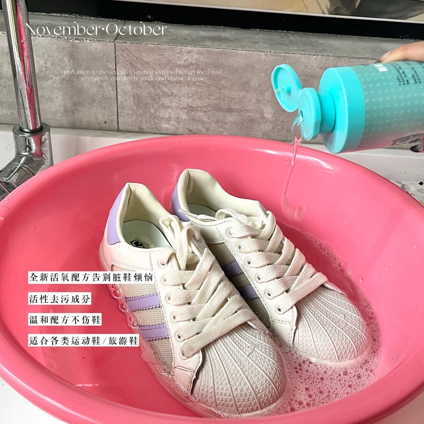 先倒出活氧剂加水浸泡,然后把鞋放进去,冲出清洁泡沫,静置约15-30分钟再拿出来
