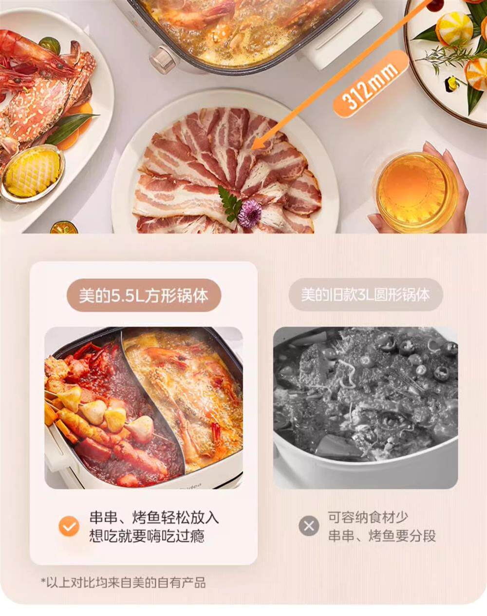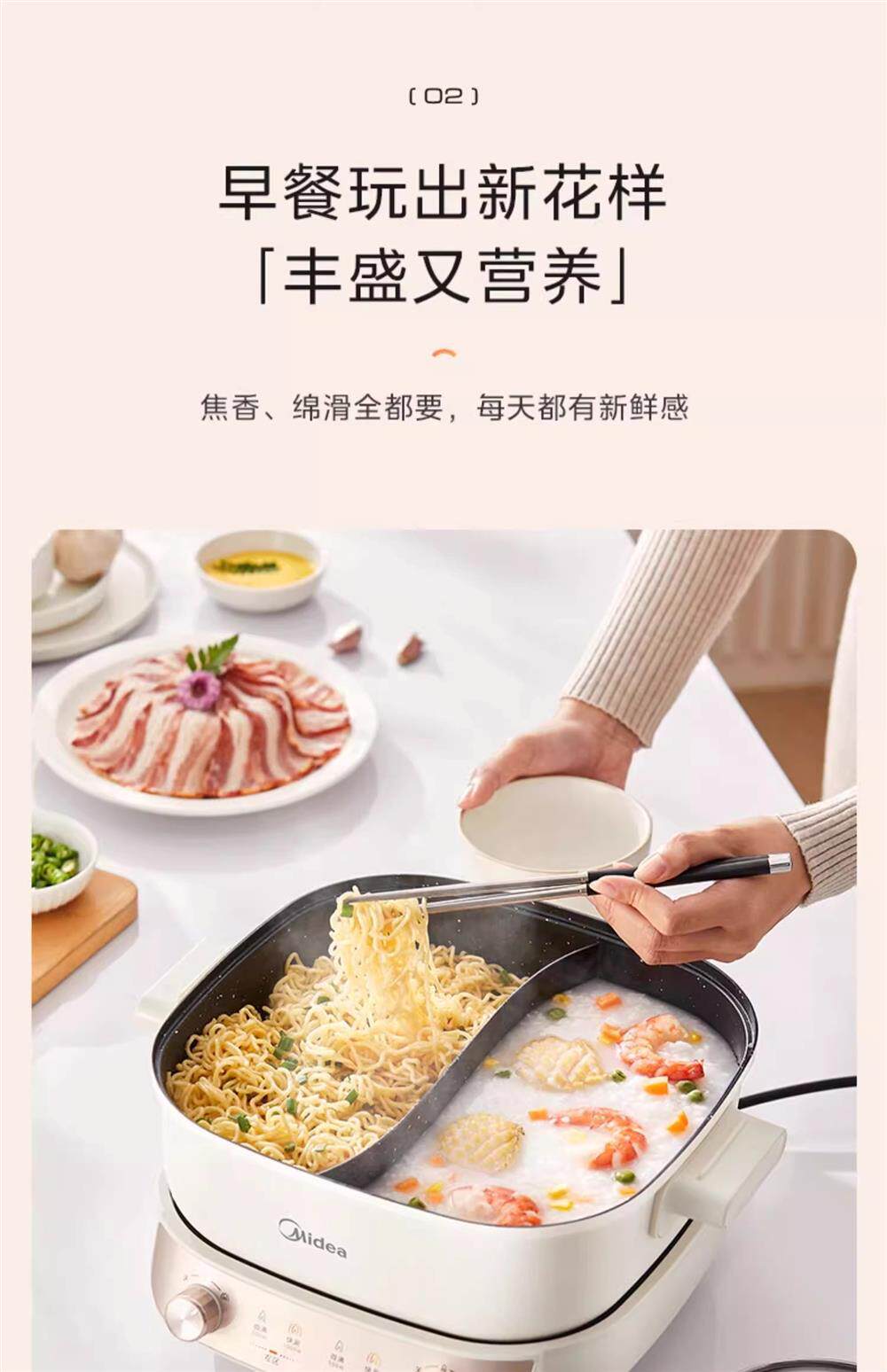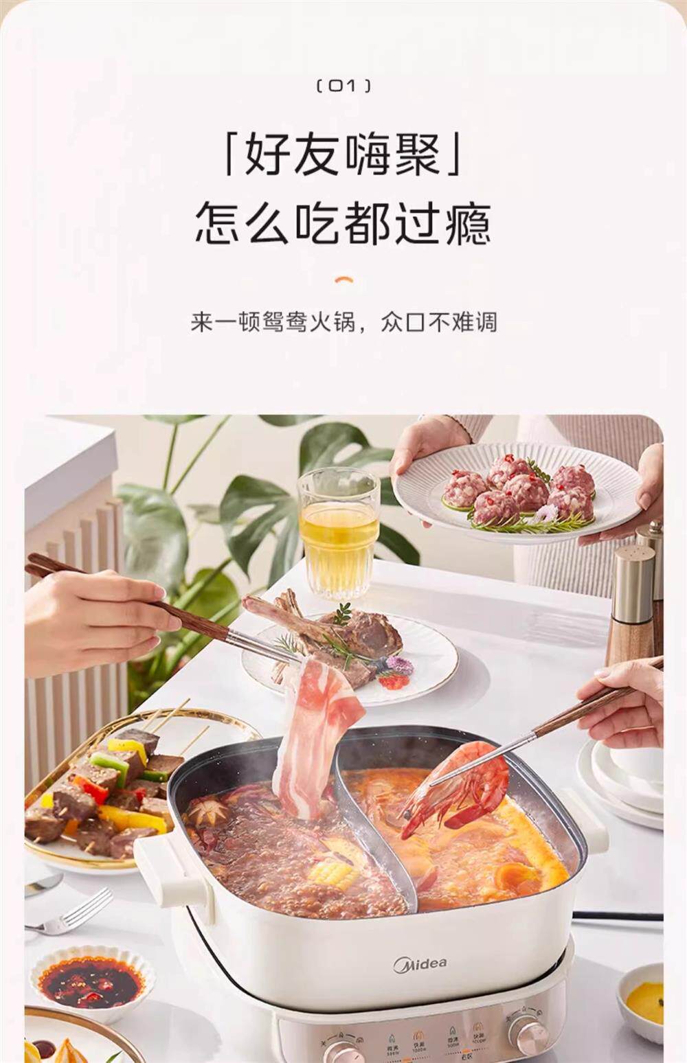 美的MC-HGS282813电火锅鸳鸯分体式多功能煮锅煎炒电热锅不粘锅 商品图2