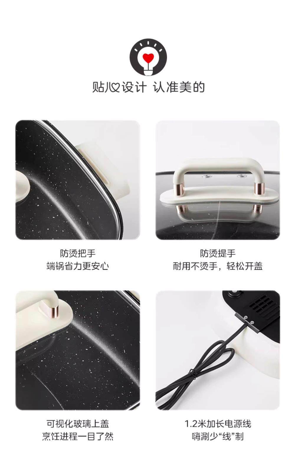 美的MC-HGS282813电火锅鸳鸯分体式多功能煮锅煎炒电热锅不粘锅 商品图4
