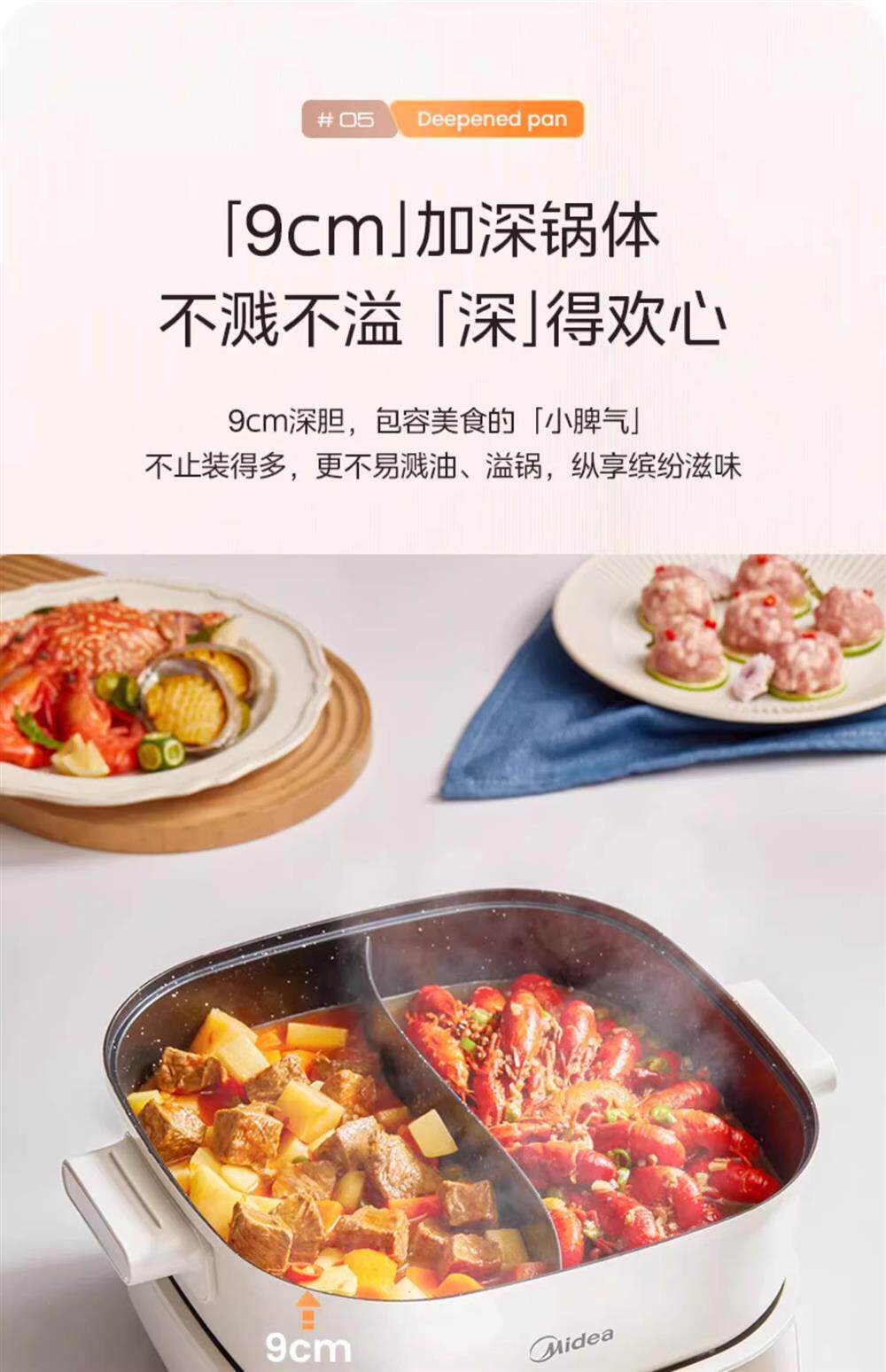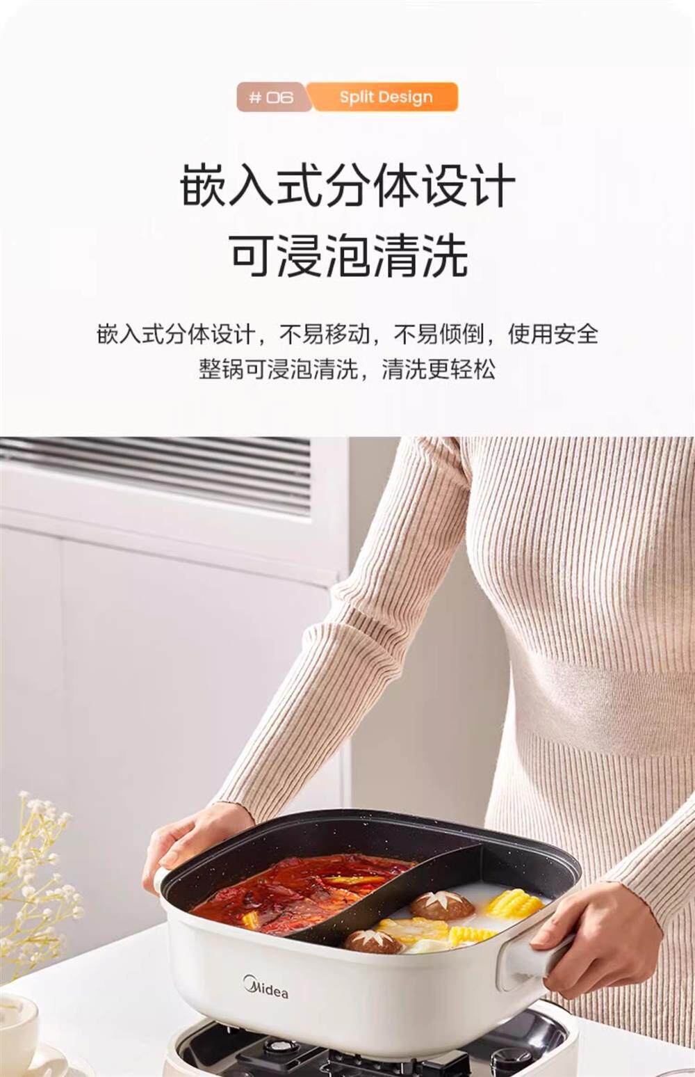 美的MC-HGS282813电火锅鸳鸯分体式多功能煮锅煎炒电热锅不粘锅 商品图3