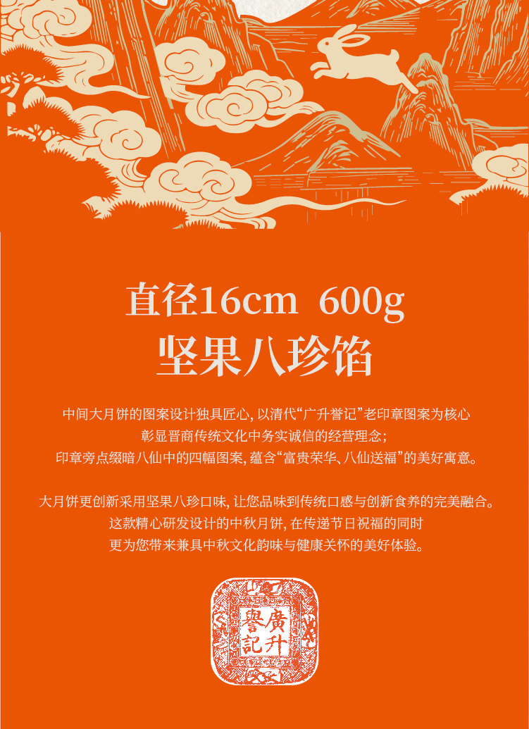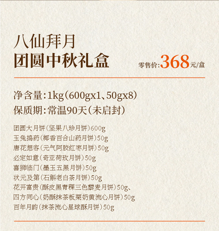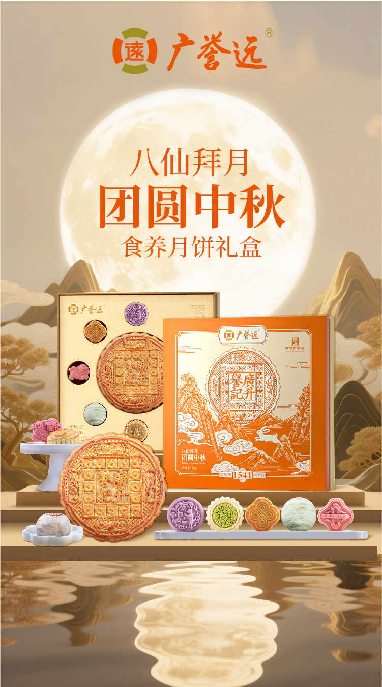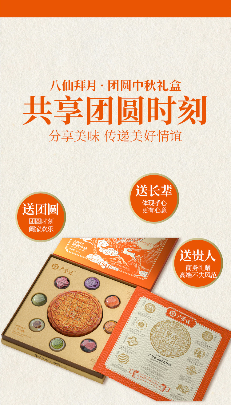 【中秋月饼】八仙拜月广誉远团圆中秋礼盒 1kg(600gx1、50gx8)