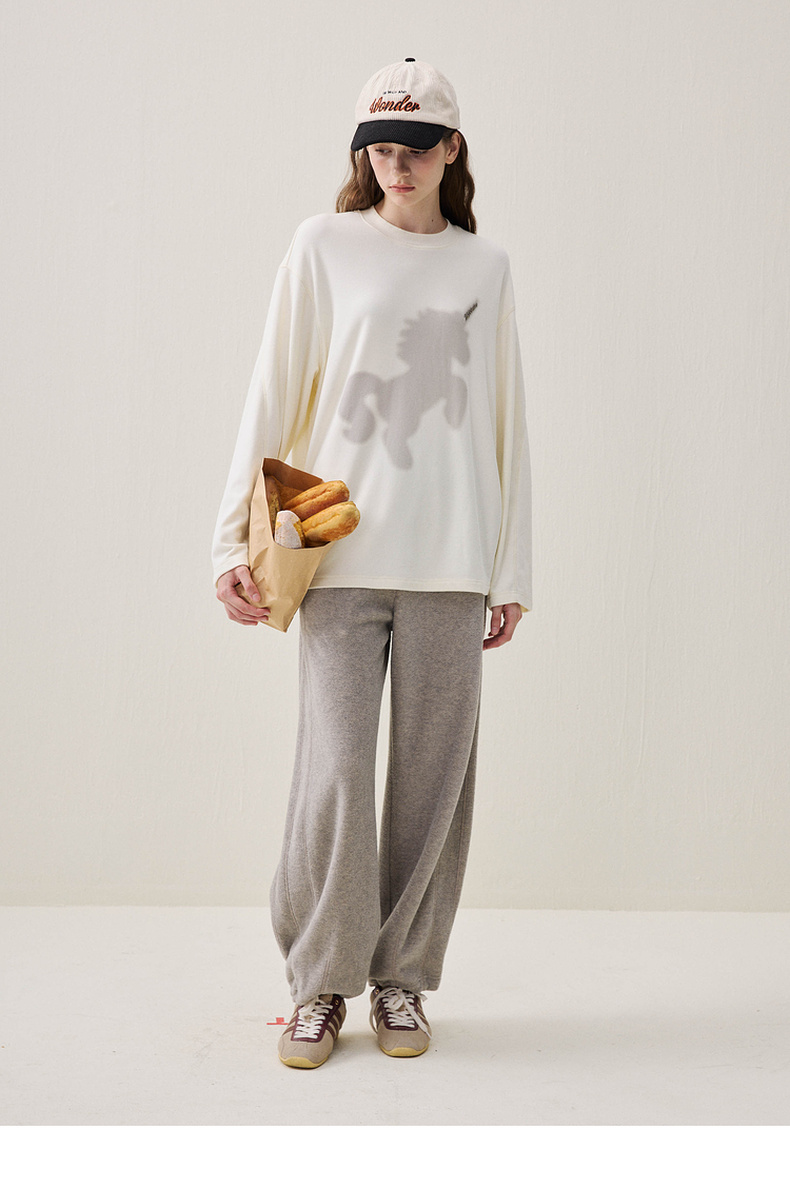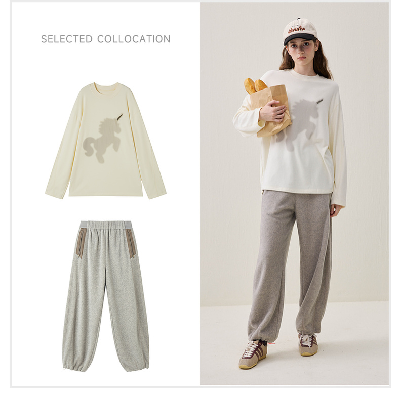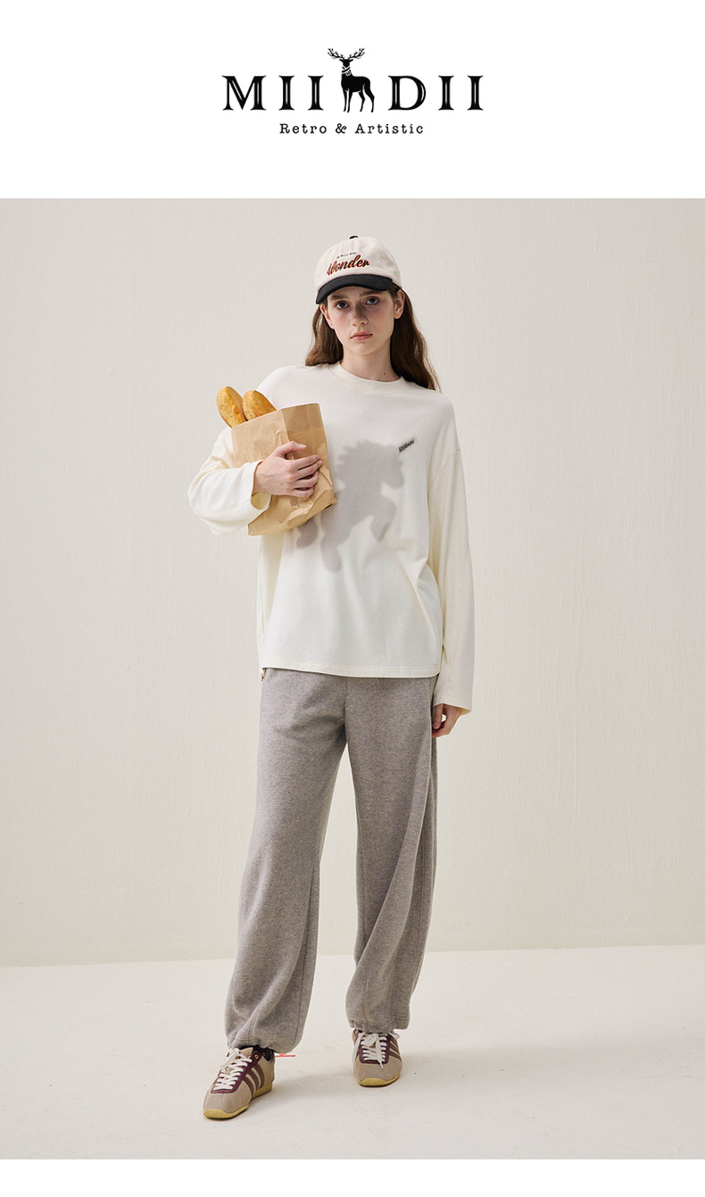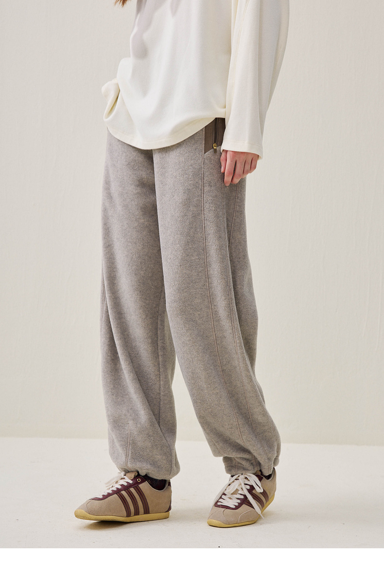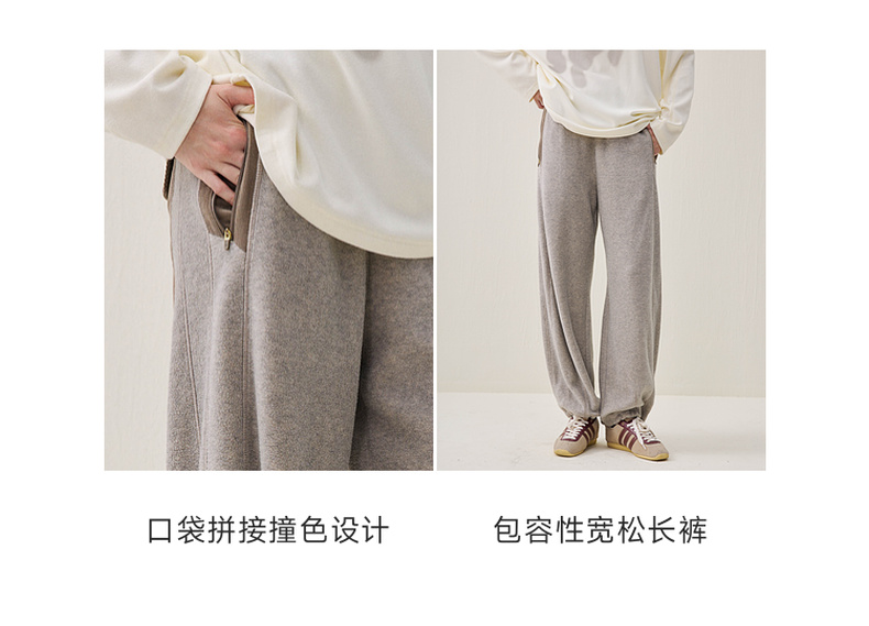 谜底松弛宽松廓形长裤2025年冬季新品复古拼接休闲裤女254MK1671