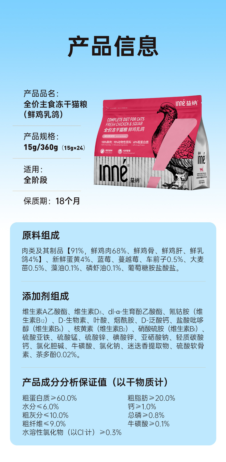 INNE益纳益能系列全价冻干猫粮(15g/包*24)/包