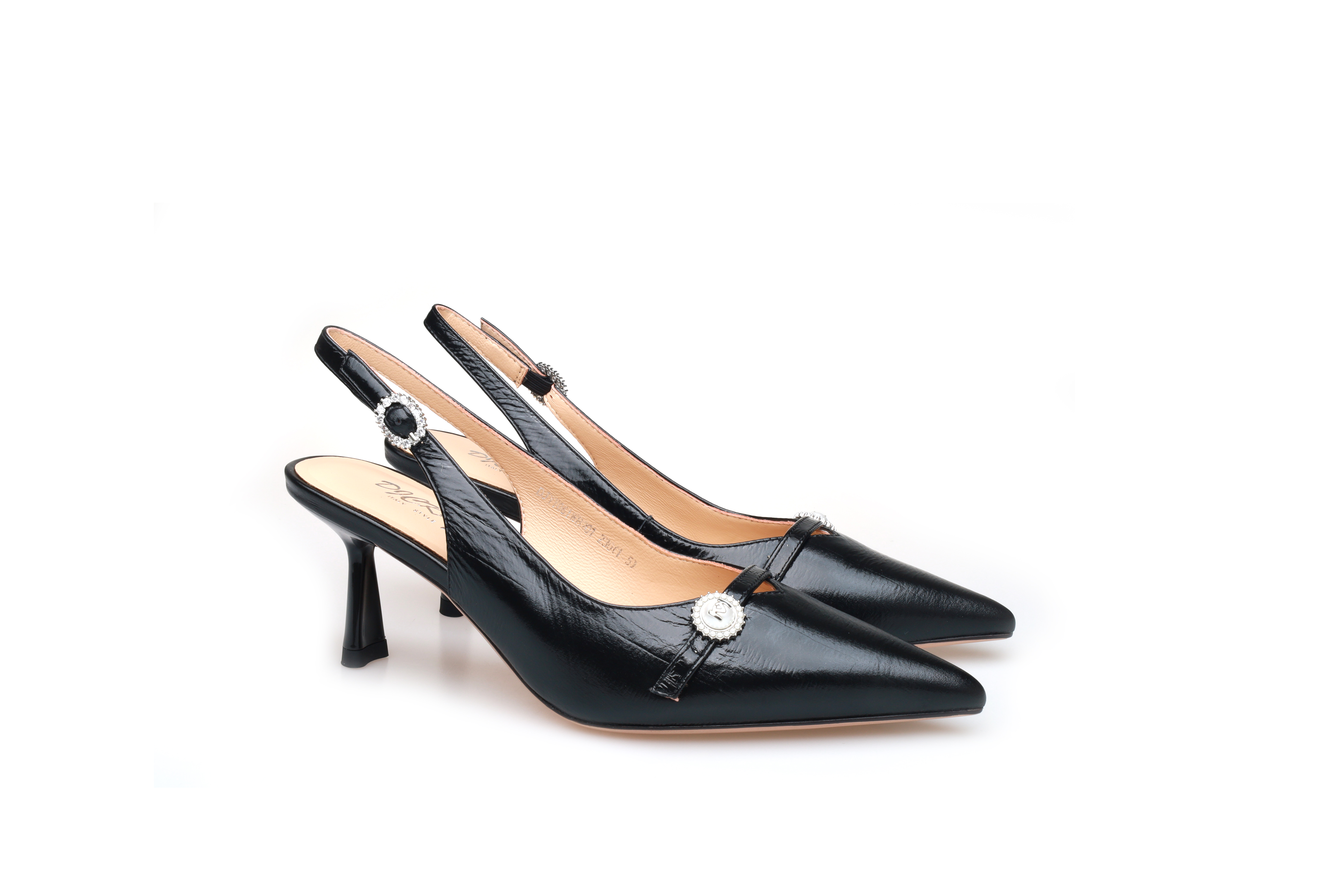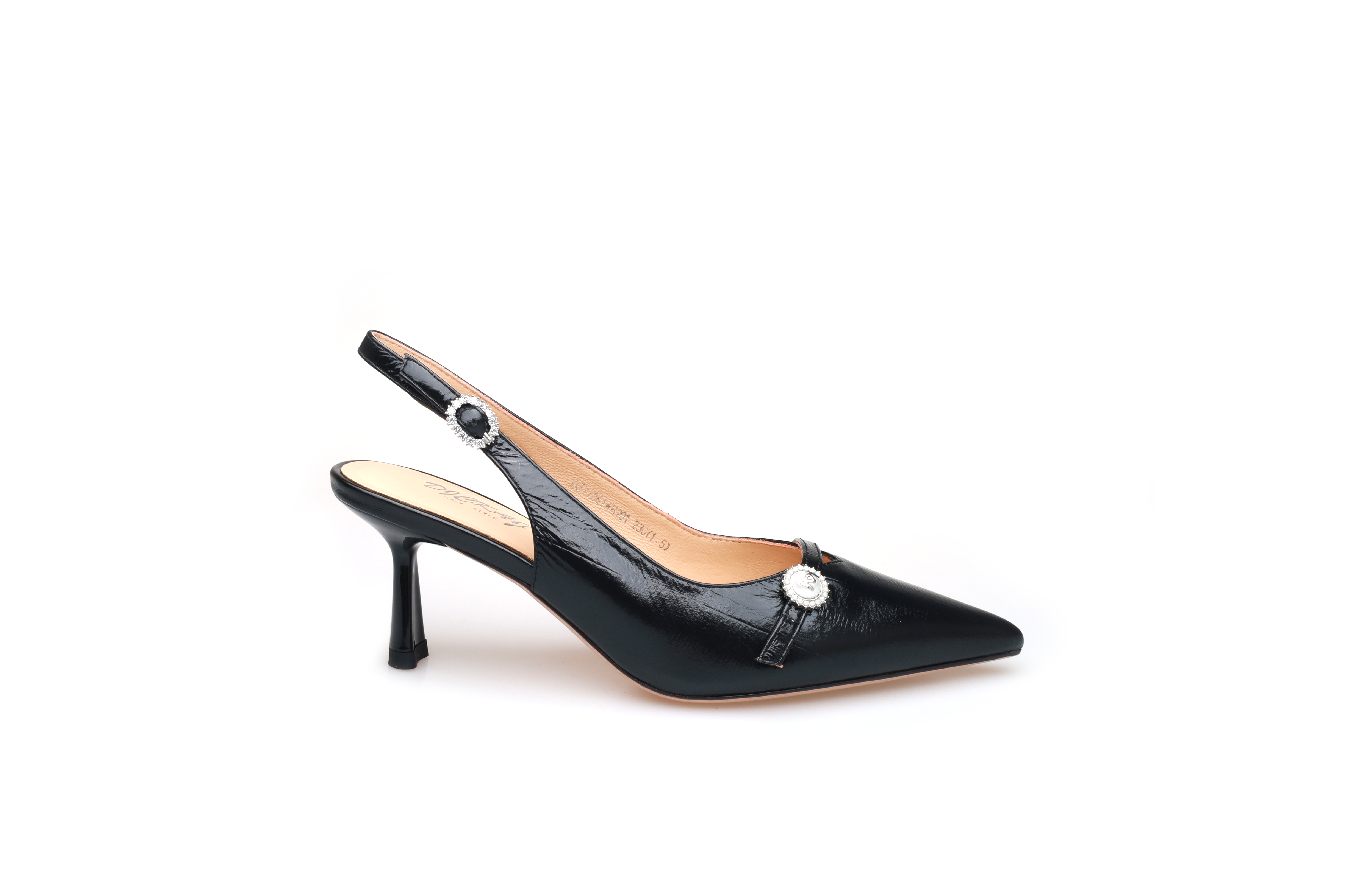 豪麟名鞋奥莱迪嘉女鞋半凉鞋鳗鱼皮革DJYYO61WB201黑色 原价1960元