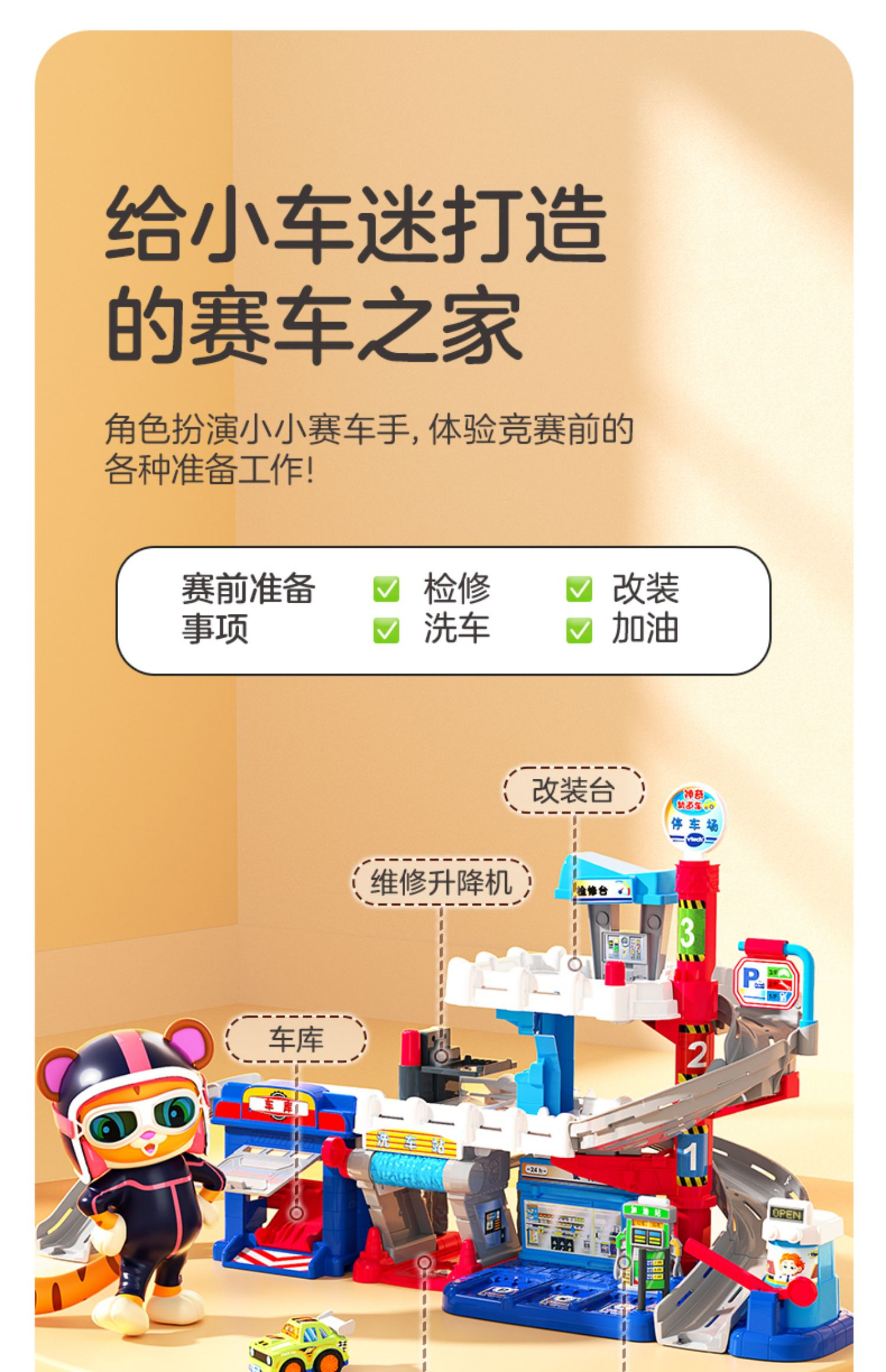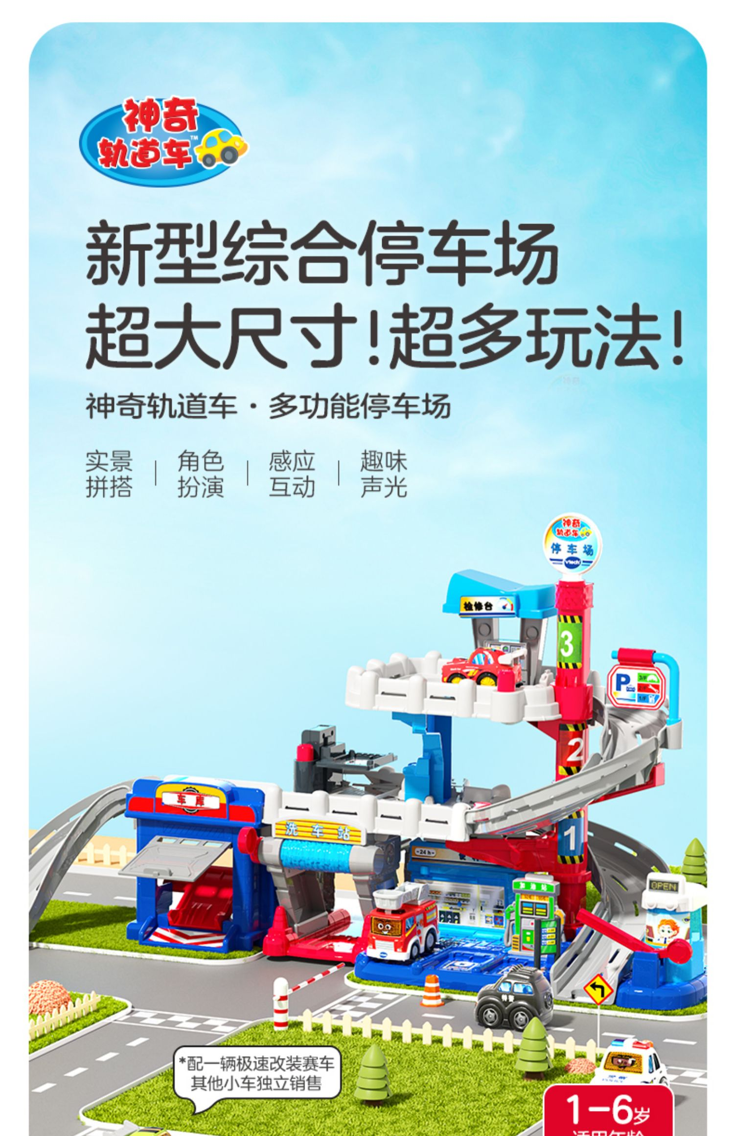 伟易达神奇轨道车多功能停车场积木益智儿童闯关冒险玩具3岁4男孩
