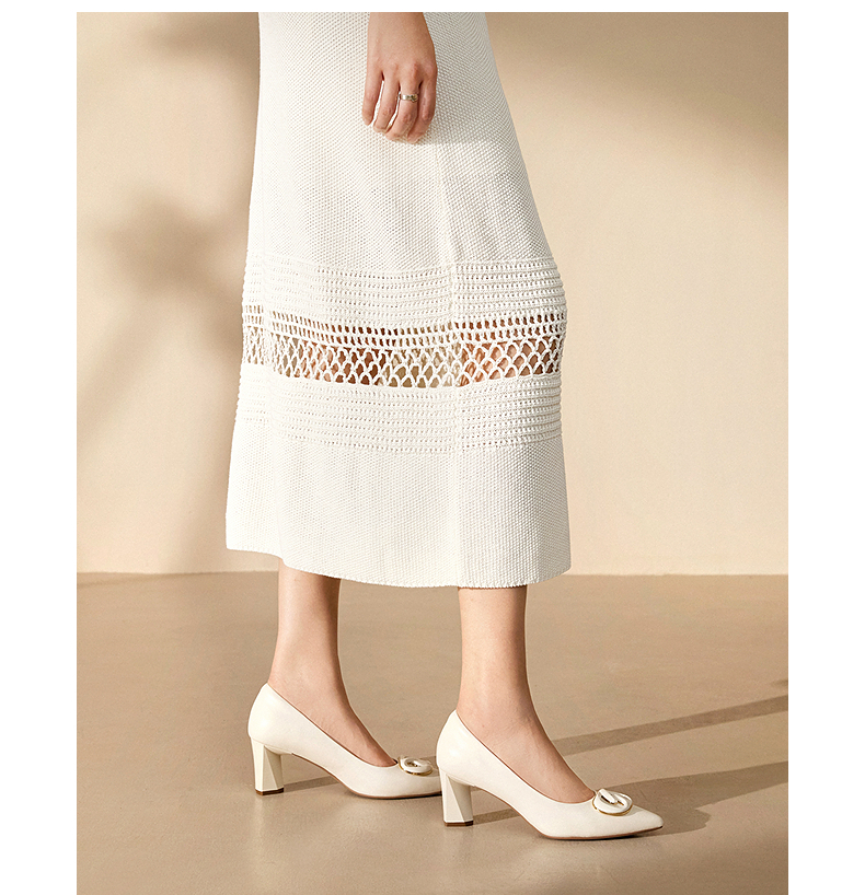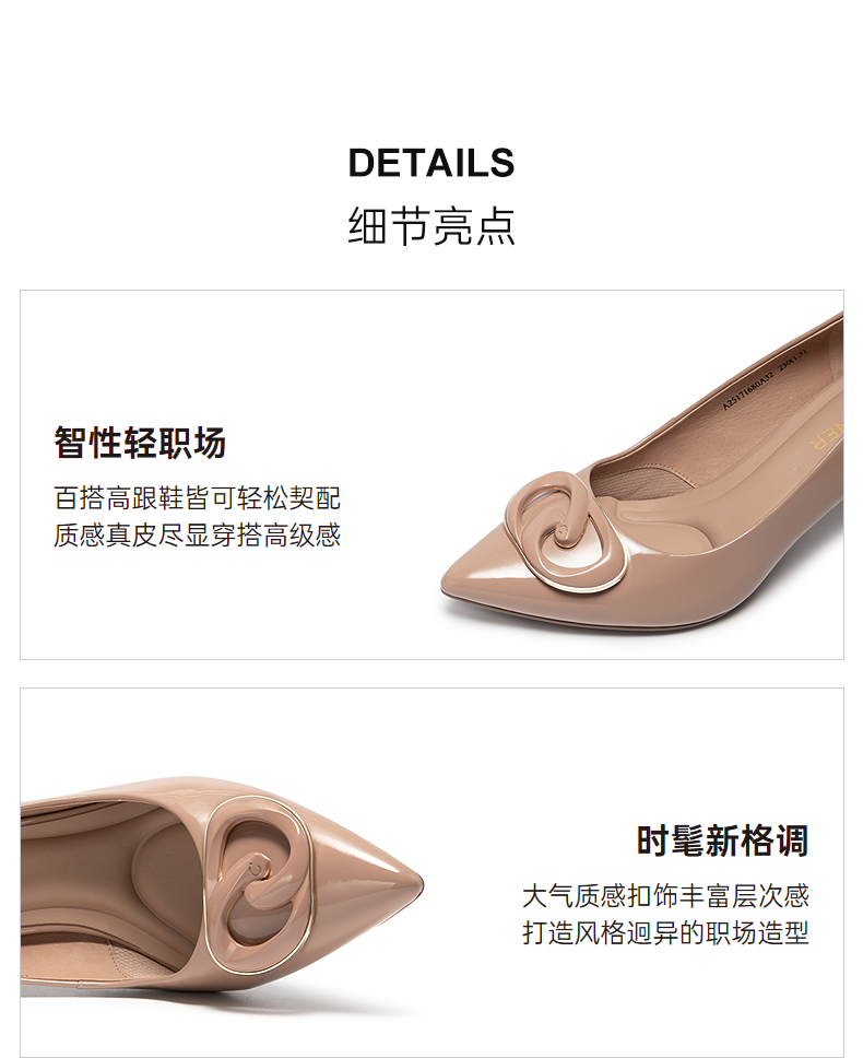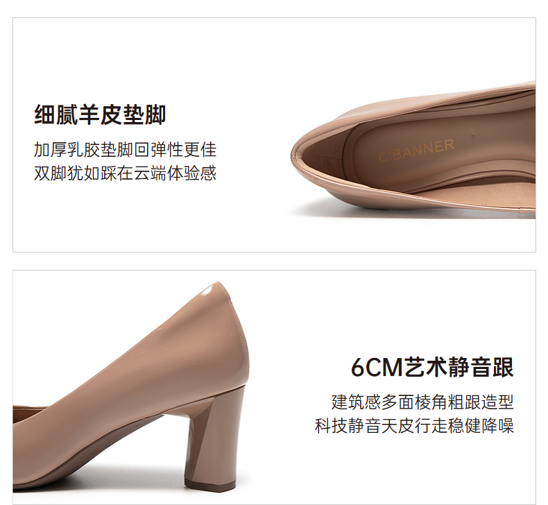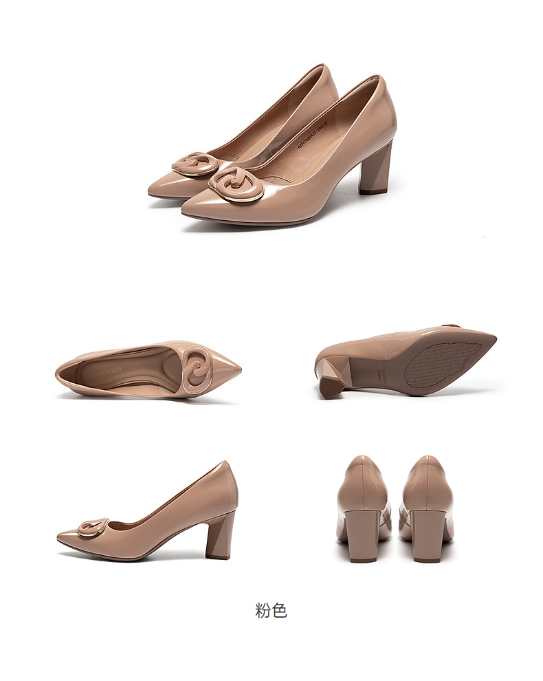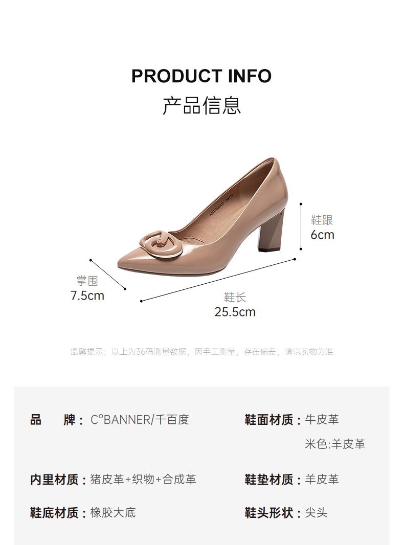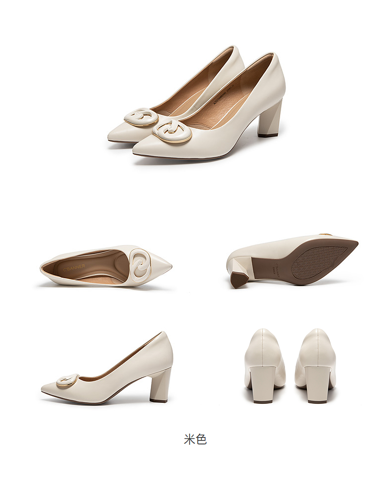 【静音系列】千百度粗高跟羊皮鞋女通勤正装浅口单鞋A25171680