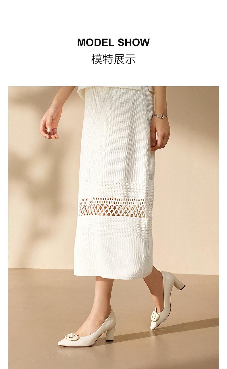 千百度羊皮玛丽珍时装凉鞋女包头后空粗中跟通勤凉鞋A25212306
