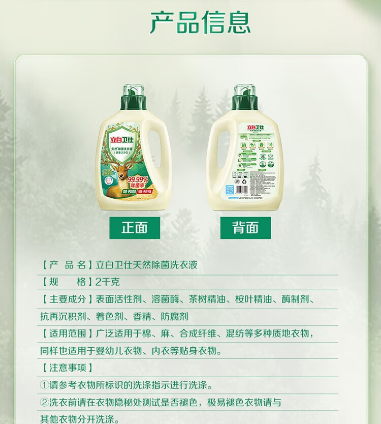 立白卫仕天然除菌洗衣液 1kg单瓶 除菌率99.99% 72小时长效抑菌