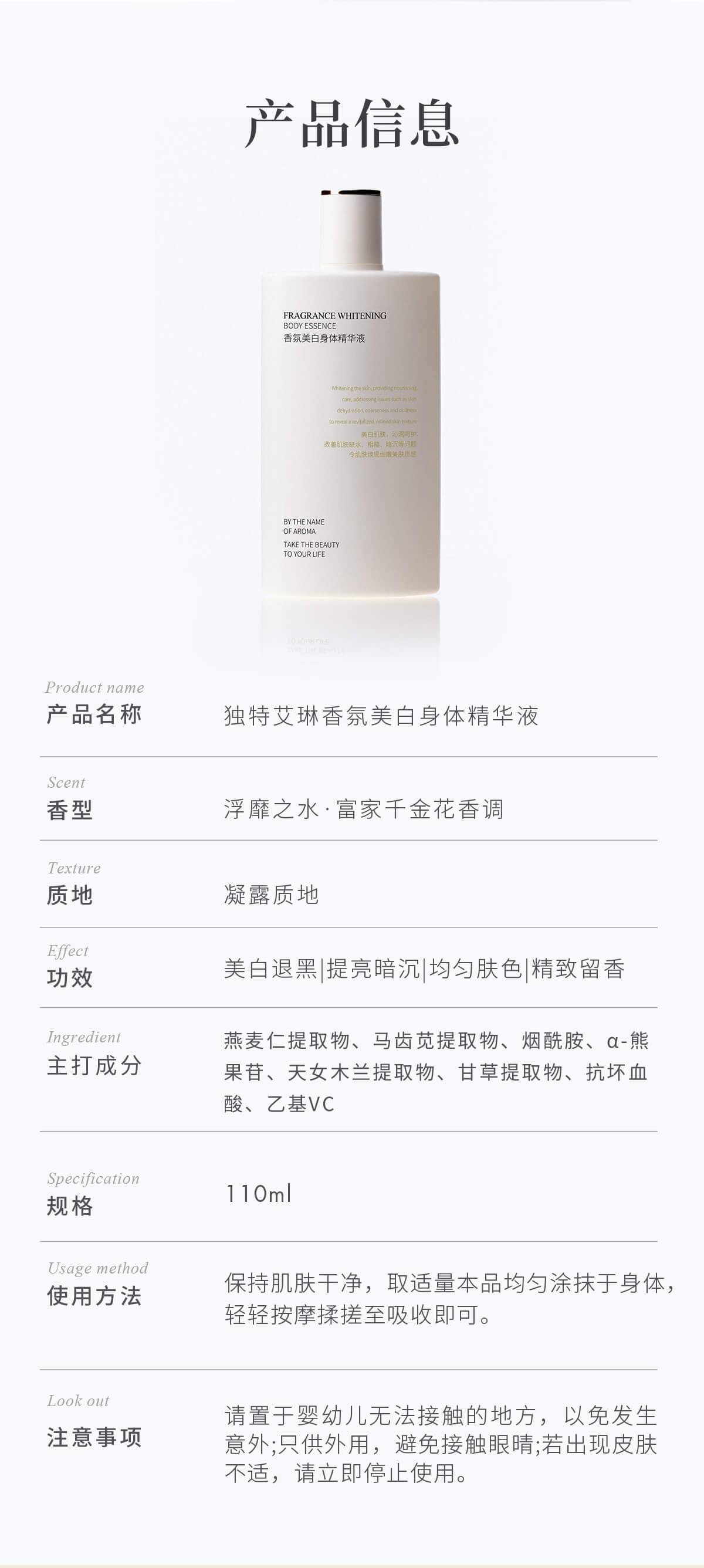Dear Irean 独特艾琳香氛美白身体精华液110ml【YW】