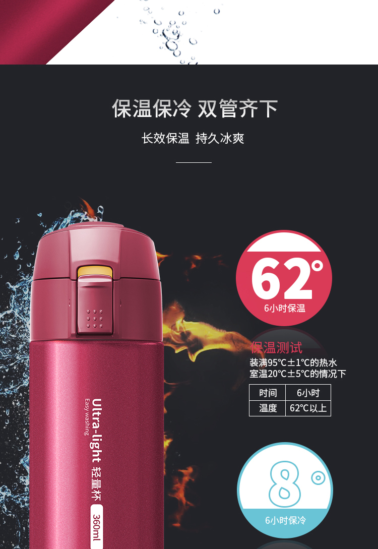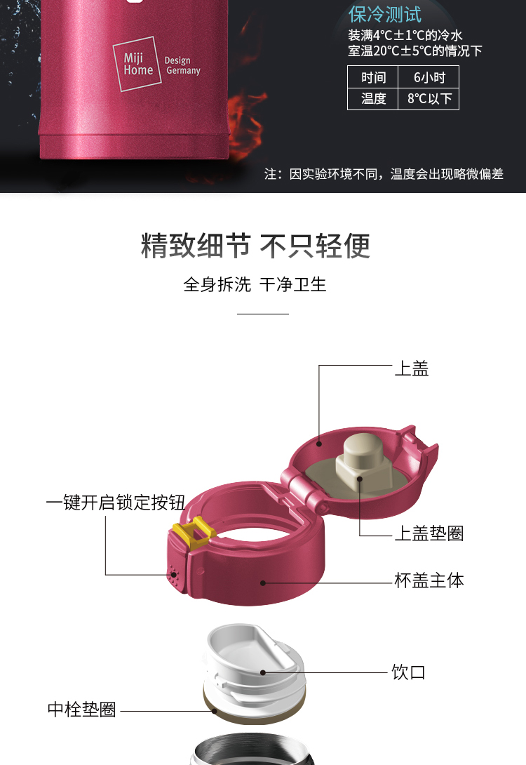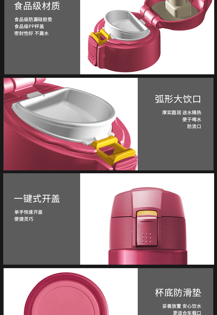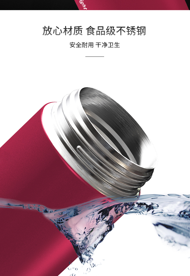 米技 一键式真空不锈钢轻量杯 360ml 玫瑰红 商品图4