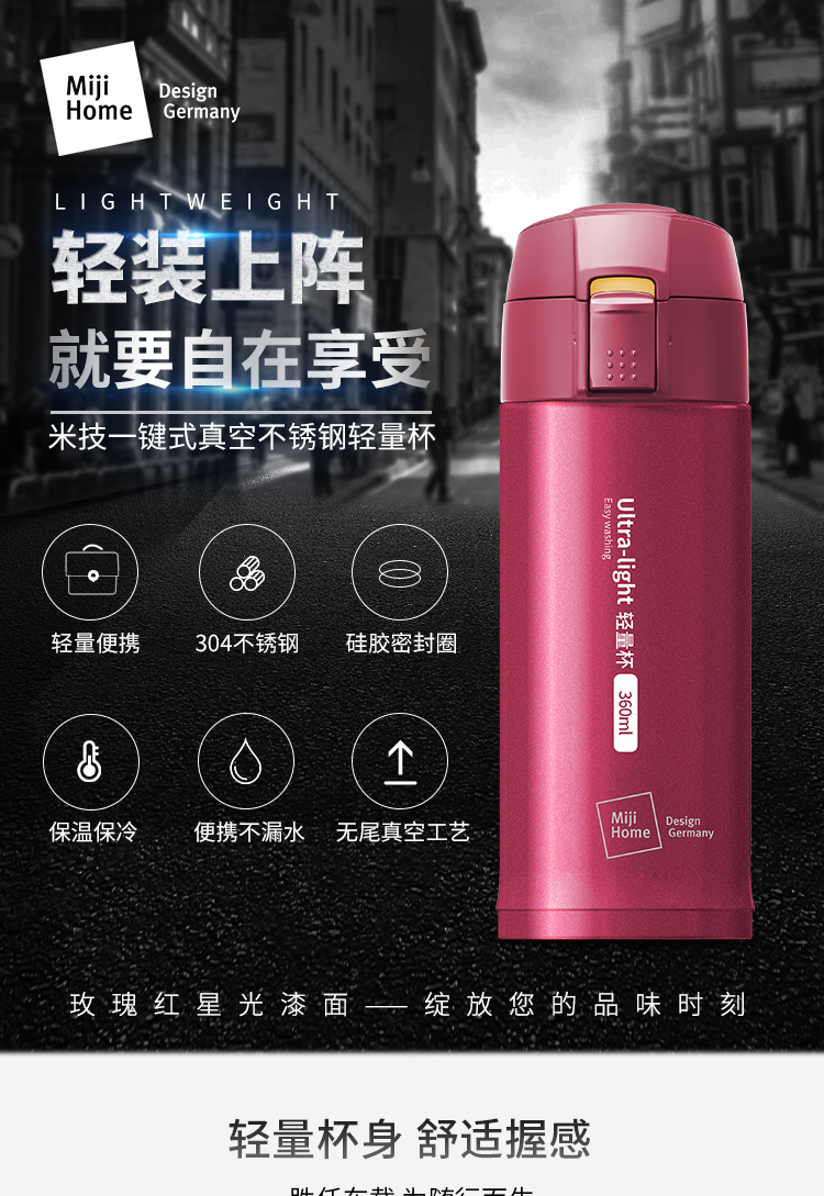 米技 一键式真空不锈钢轻量杯 360ml 玫瑰红 商品缩略图0 米技 一键式真空不锈钢轻量杯 360ml 玫瑰红 商品缩略图1 米技 一键式真空不锈钢轻量杯 360ml 玫瑰红 商品缩略图2 米技 一键式真空不锈钢轻量杯 360ml 玫瑰红 商品缩略图3 米技 一键式真空不锈钢轻量杯 360ml 玫瑰红 商品缩略图4