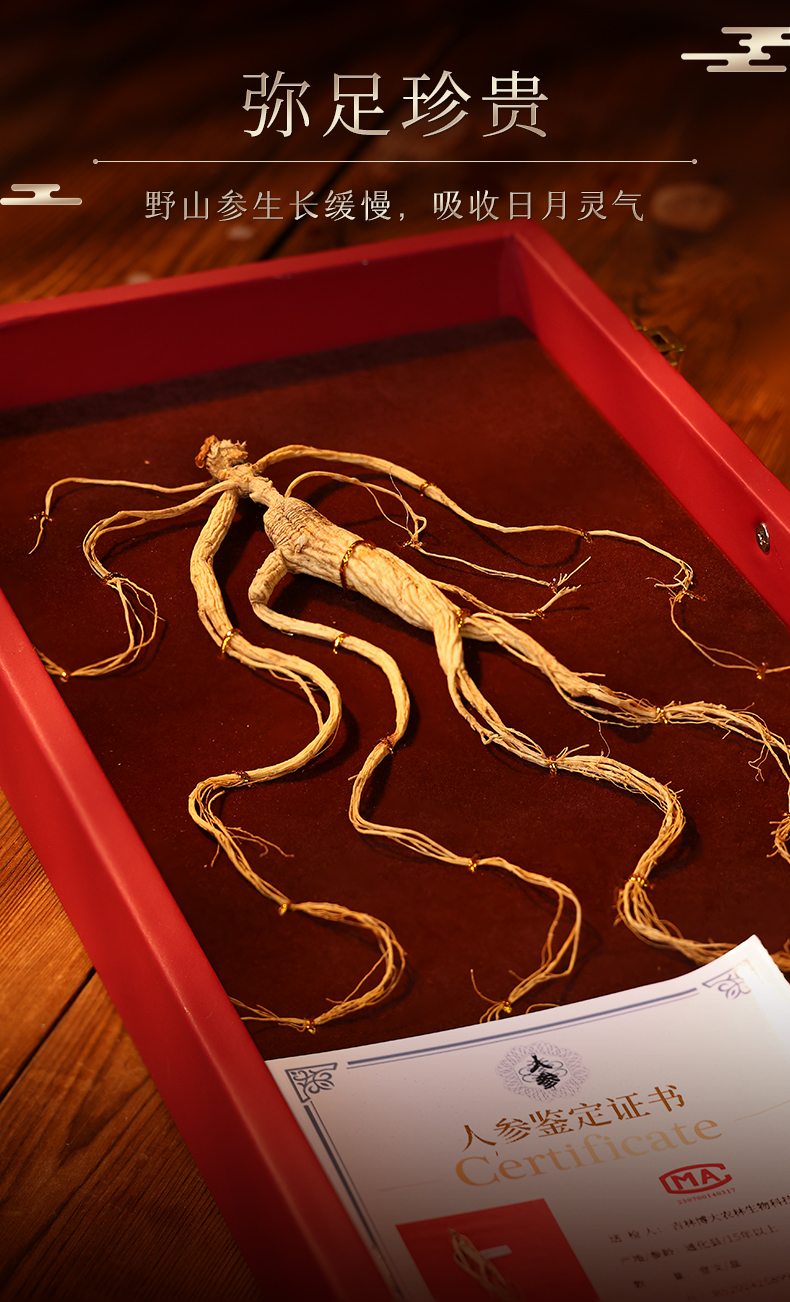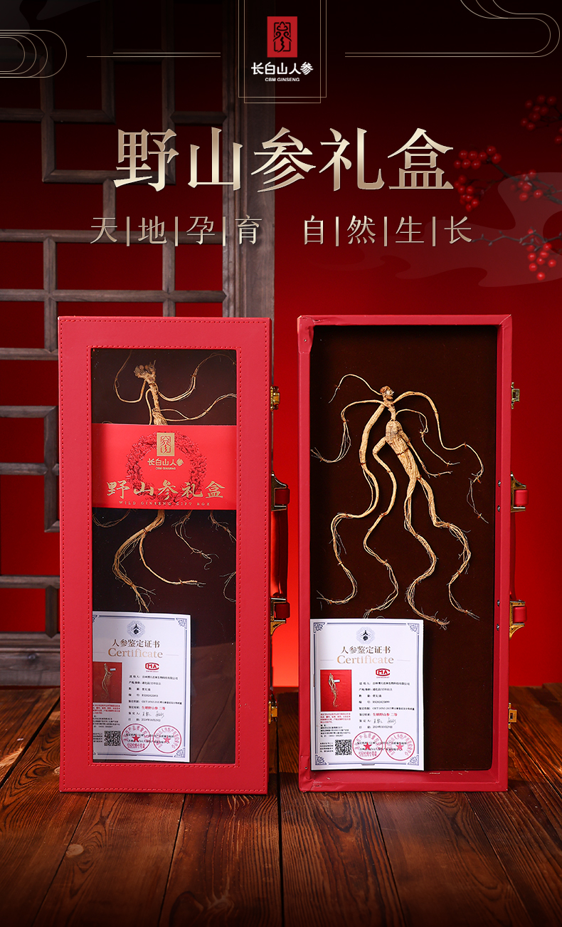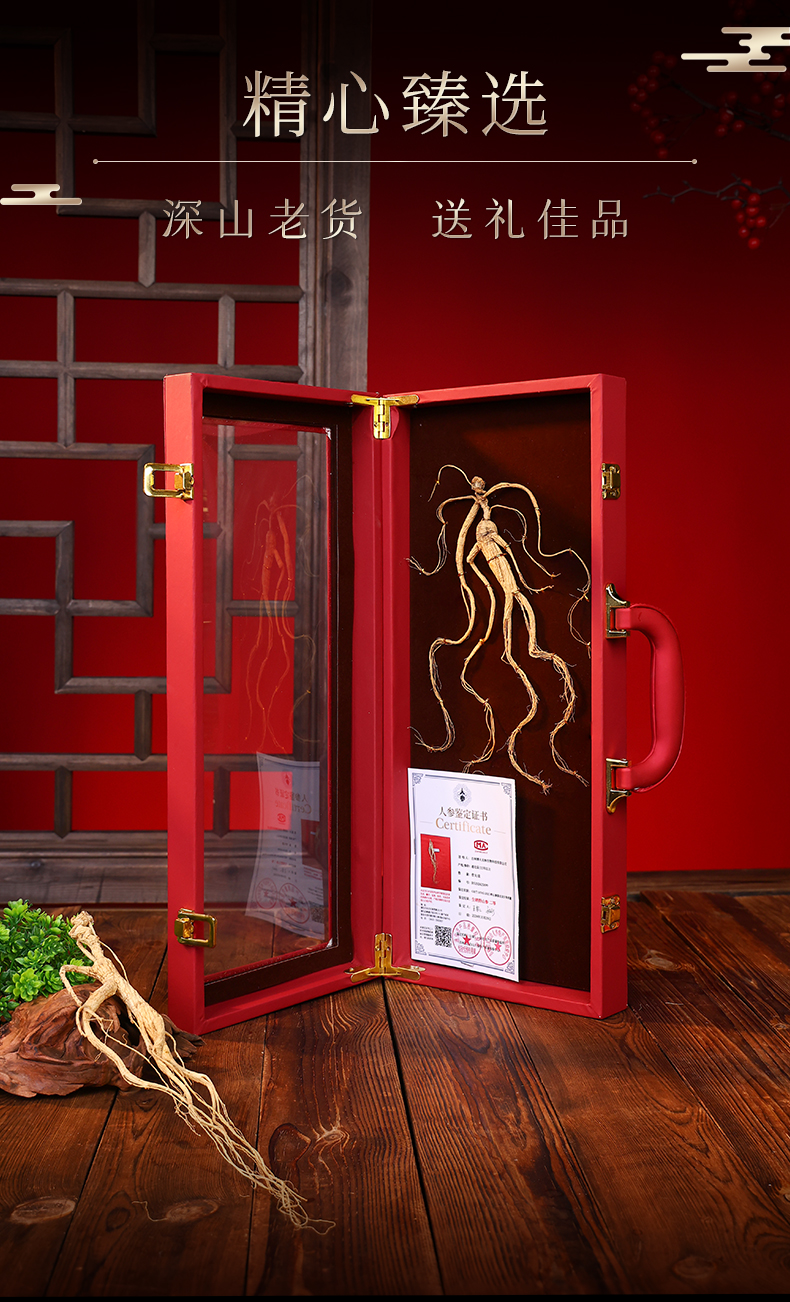 热销M【野山参开窗礼盒】长白山人参野山参礼盒装 一参一证8g/15g