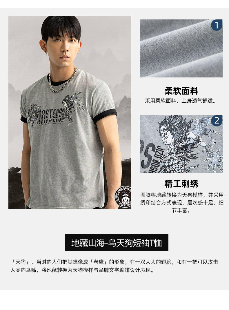 ONIARAI/鬼洗25春夏新品山海鸟天狗短袖T恤男式 J850201