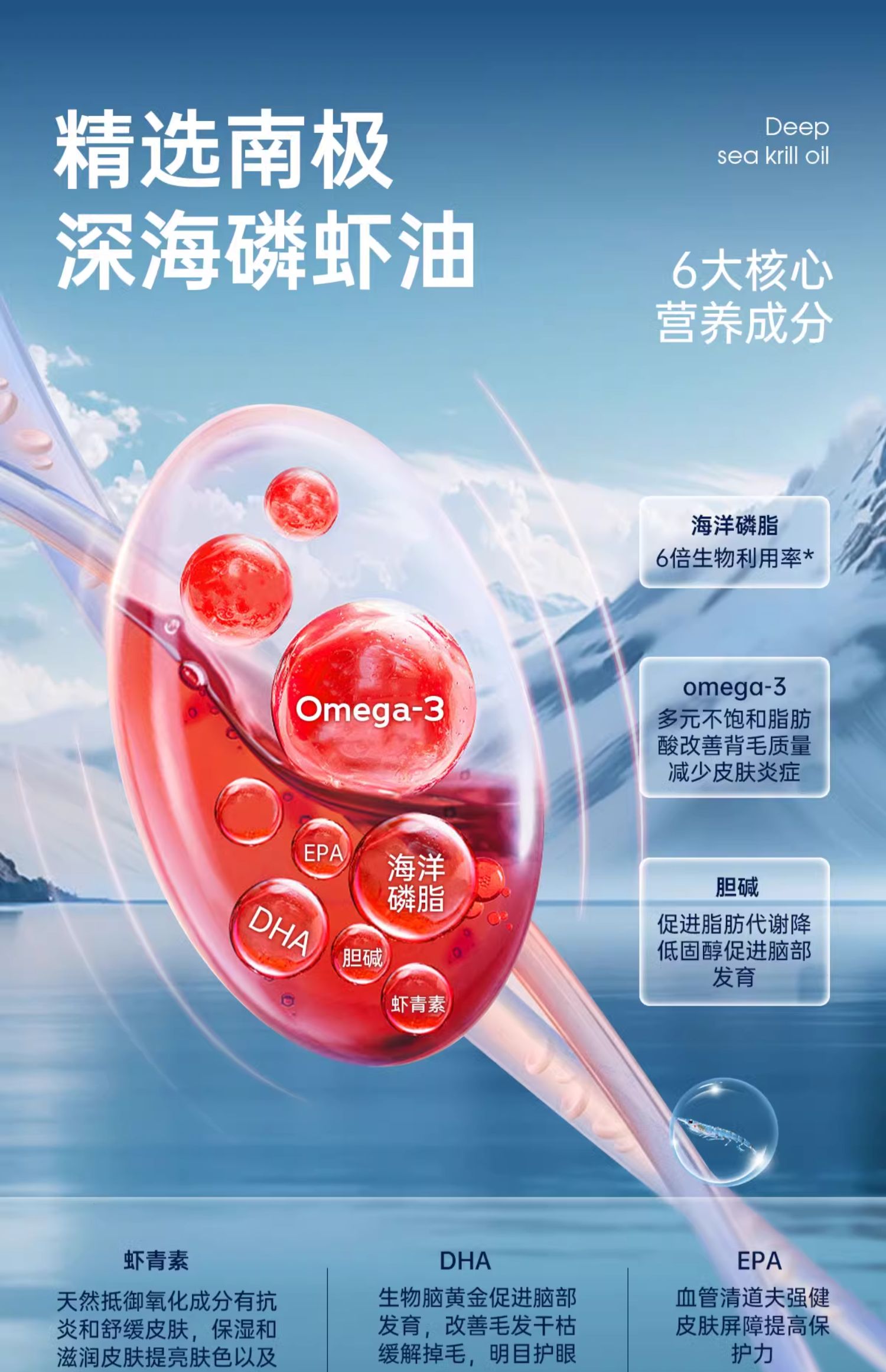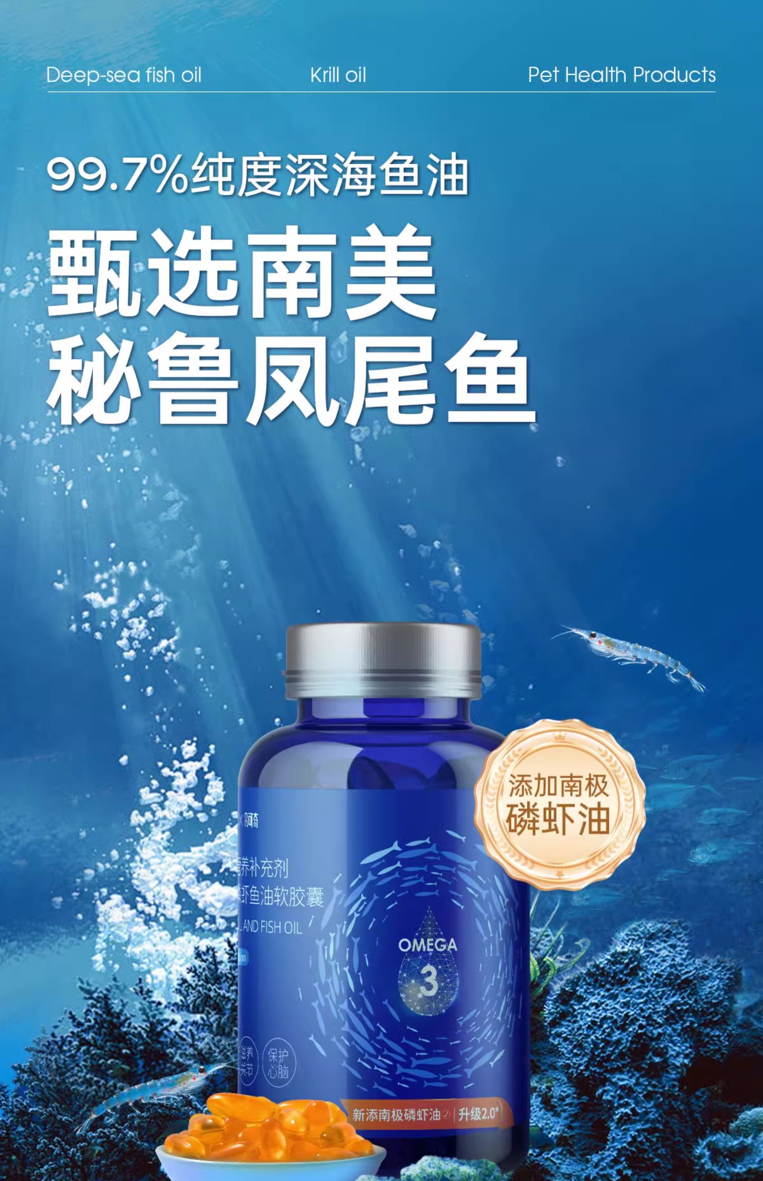 南极深海磷虾鱼油卵磷脂胶囊 60粒/瓶装 猫犬通用