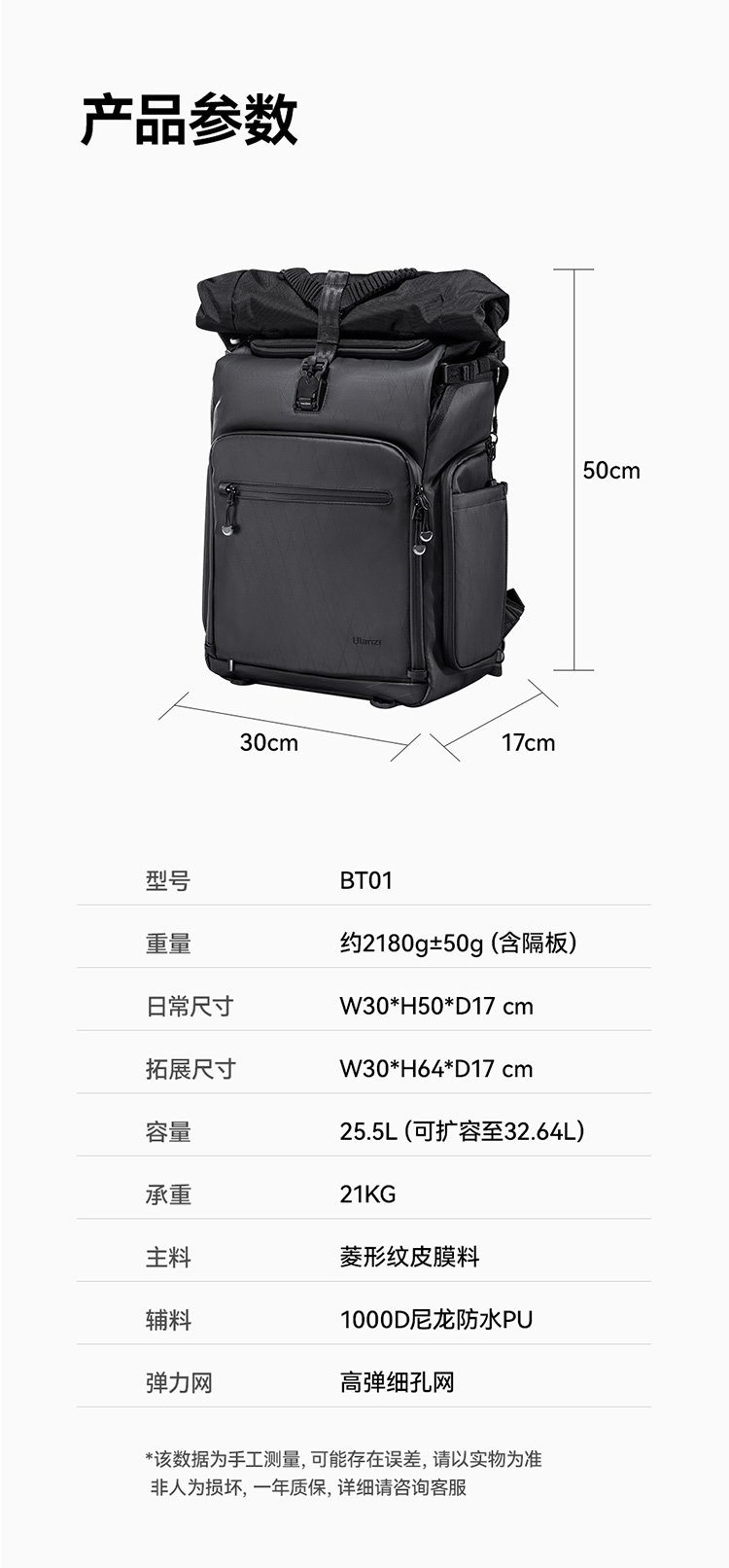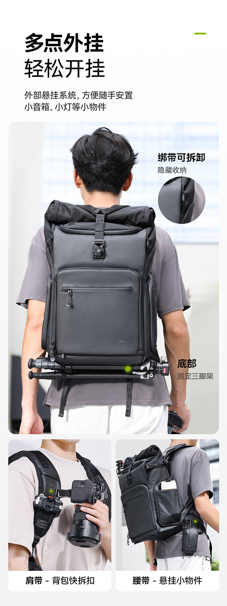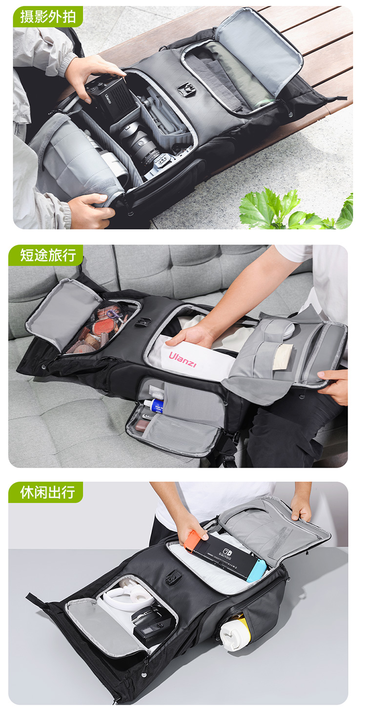 【U宝乱卖限时特惠】Ulanzi优篮子BT01短途旅行系列双肩包防水单反相机包单兵作战户外多功能背包摄影器材数码收纳包徒步登山包