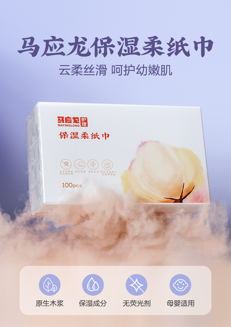 【会员专享】马应龙云柔巾婴儿保湿乳霜巾超棉柔纸巾宝宝手口亲肤面巾抽纸 100抽*6包/提