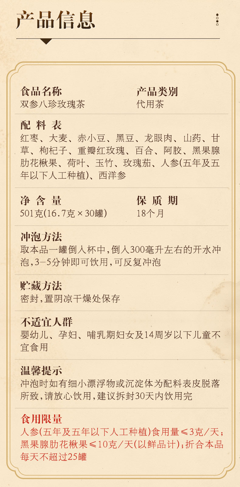 双参八珍玫瑰茶501g(16.7g×30罐)