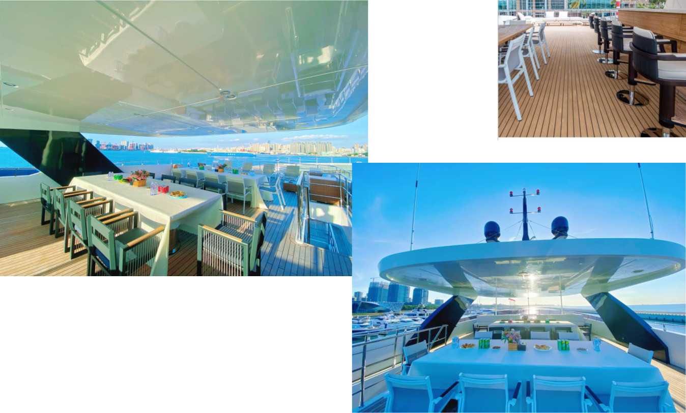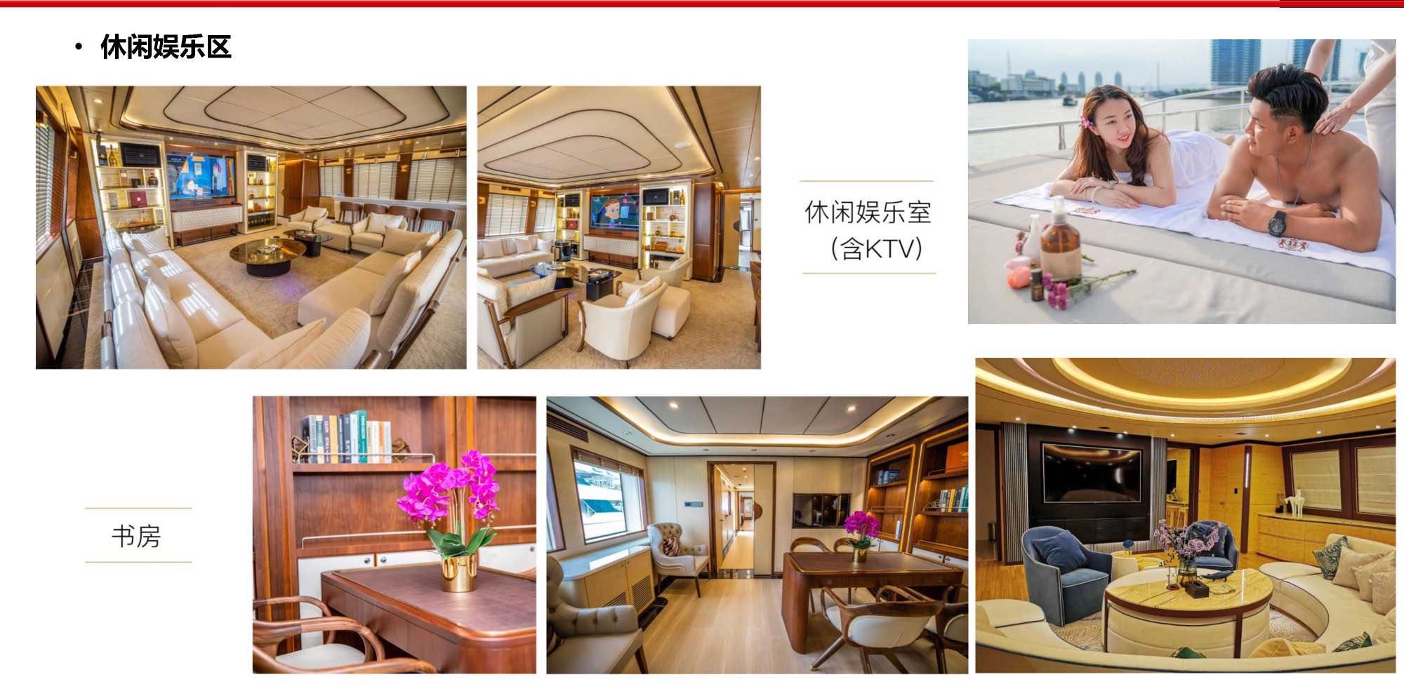 除此之外游艇上可实现的功能还有电影院、KTV、棋牌、各类party、Spa、茶艺、中餐、西餐等。
