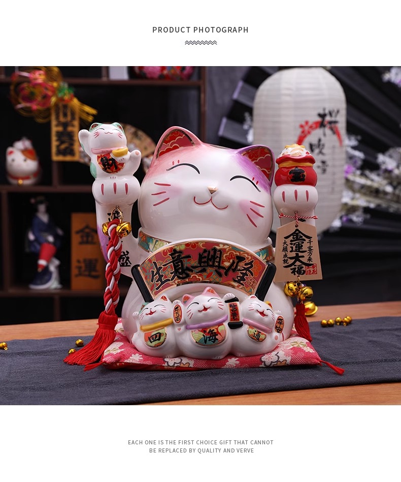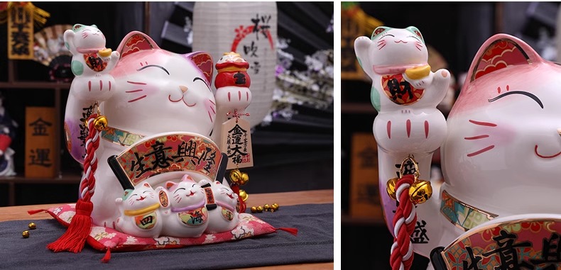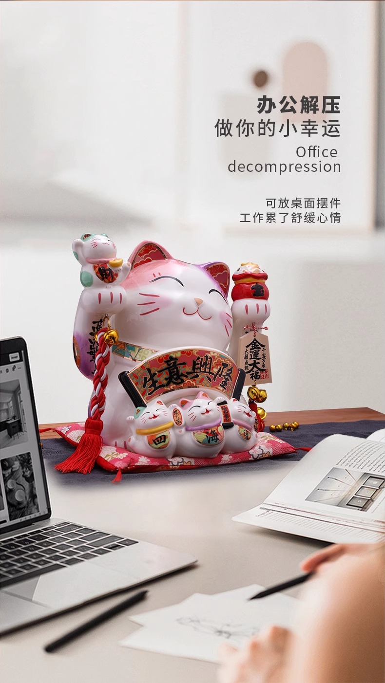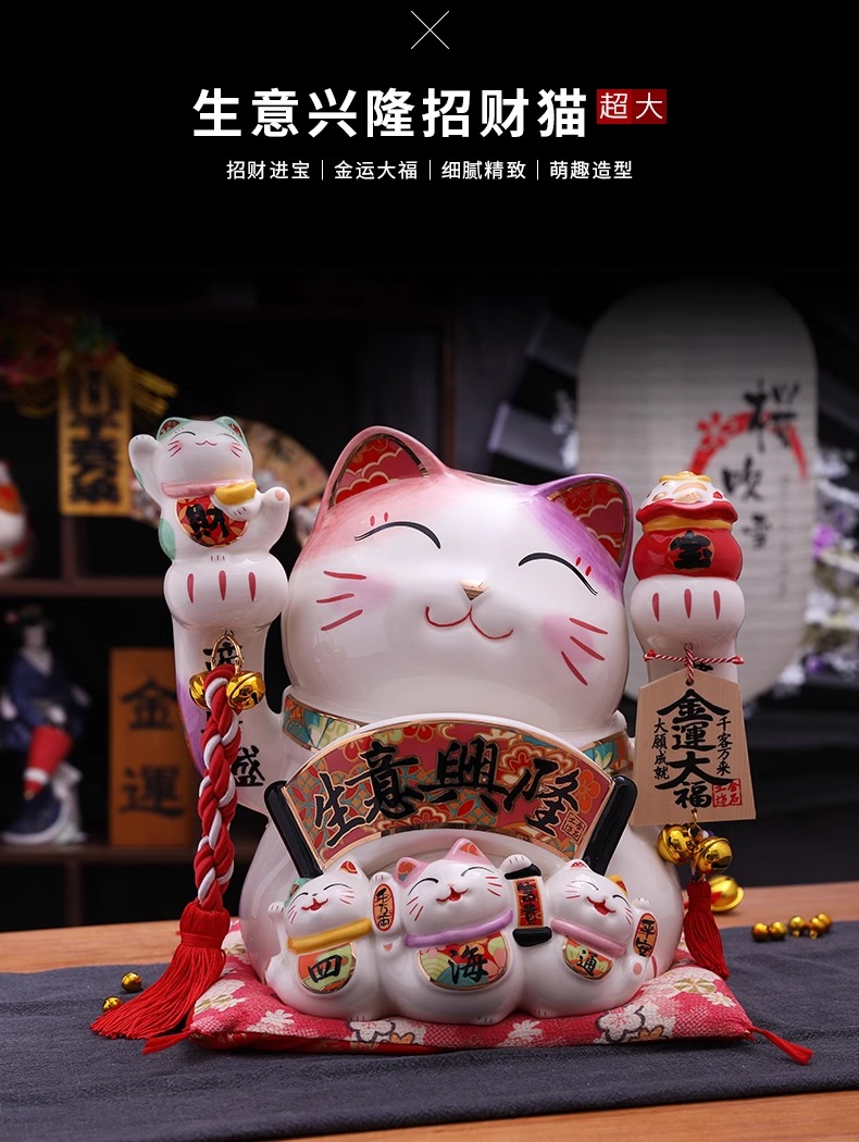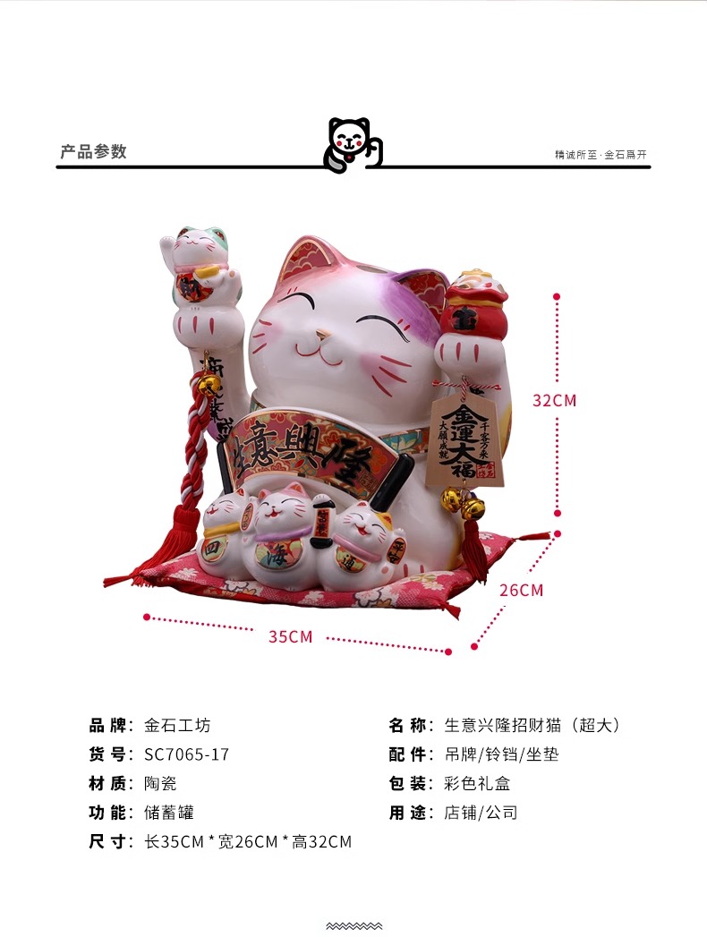 金石工坊招财猫大号摆件开业礼品日式收银台招财猫陶瓷储蓄存钱罐生意兴隆招财猫