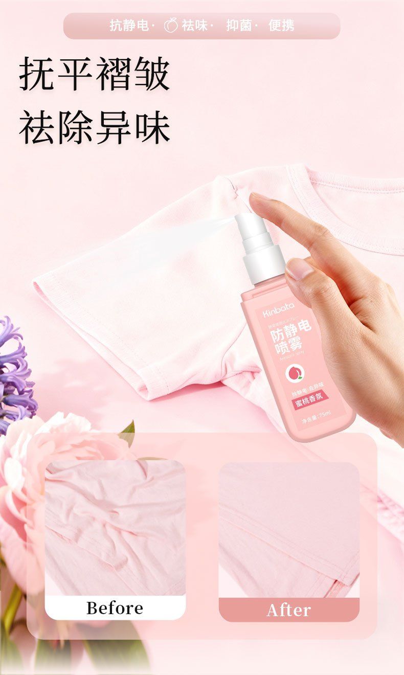【KINBATA防静电香氛喷雾】✅消+防双重抗静电,防粘毛、粘身 ✅淡雅芳香,净化异味,伪体香 ✅喷雾巨细腻,不留水印、不毁面料 -ZTDJ