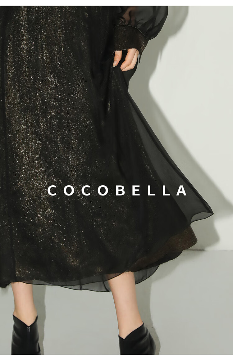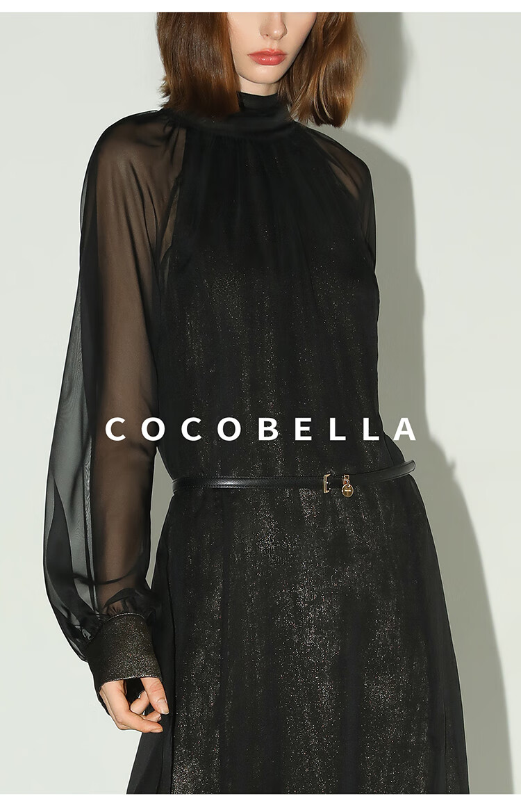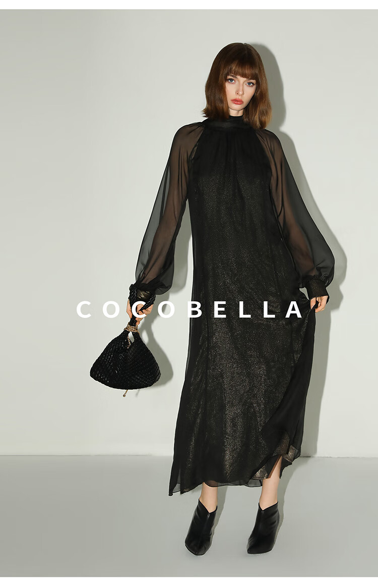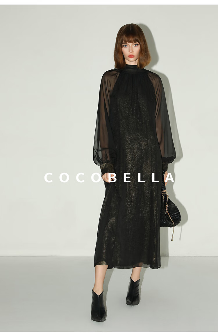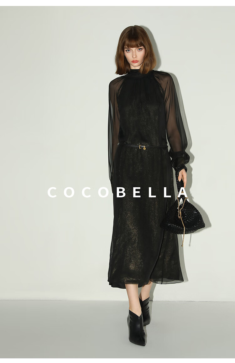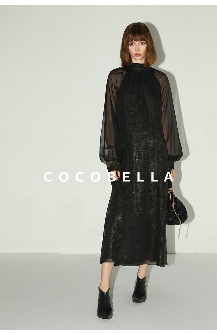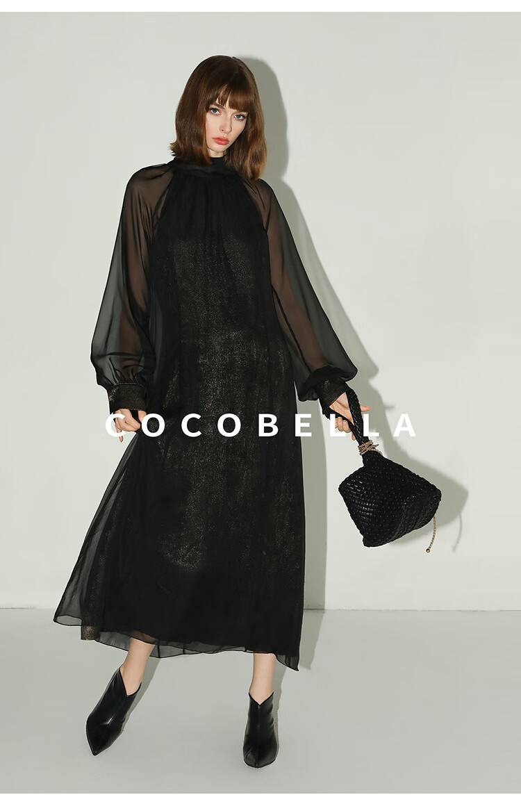 【限时秒杀】COCOBELLA[黑金]赫本风优雅小黑裙半高领假两件连衣裙FR0053