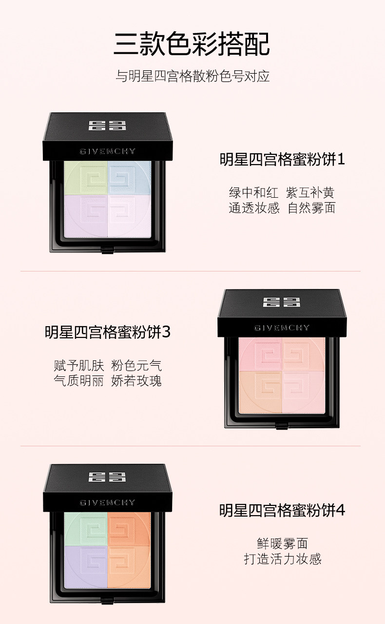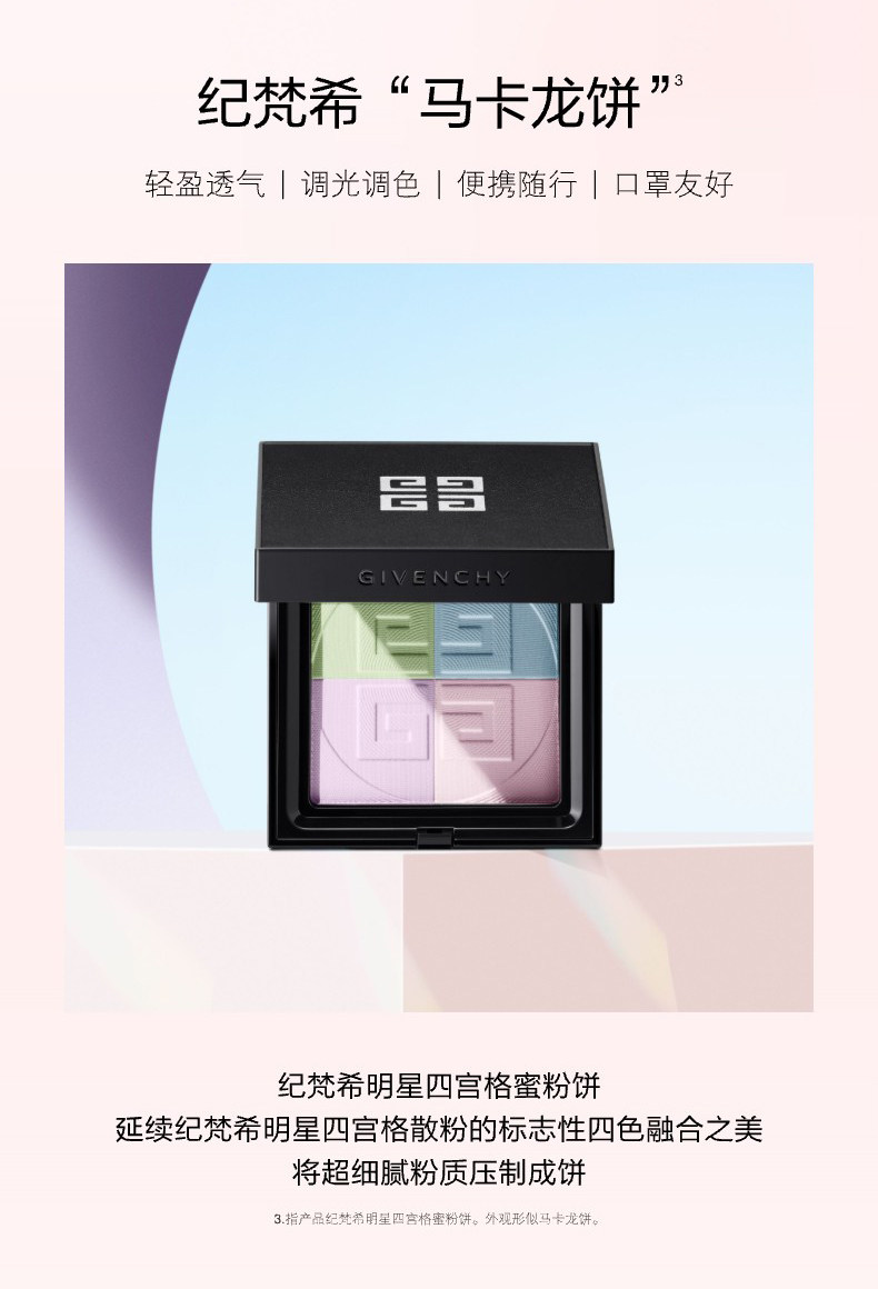 纪梵希 轻盈无痕明星四宫格蜜粉饼9.5g 马卡龙蜜粉饼定妆