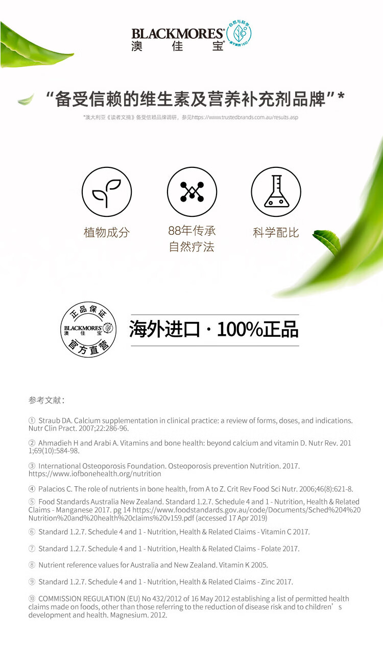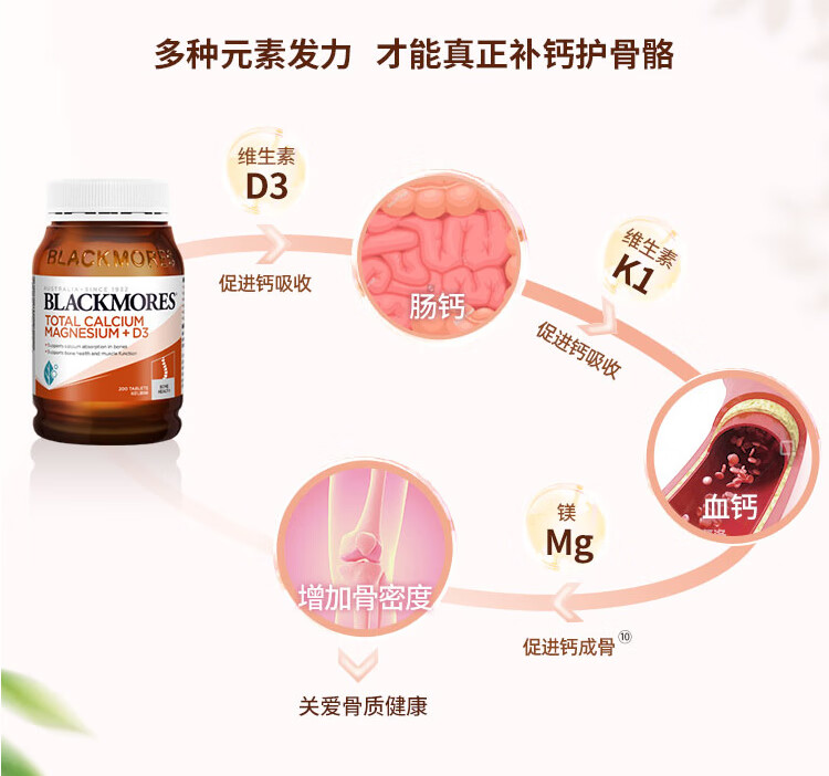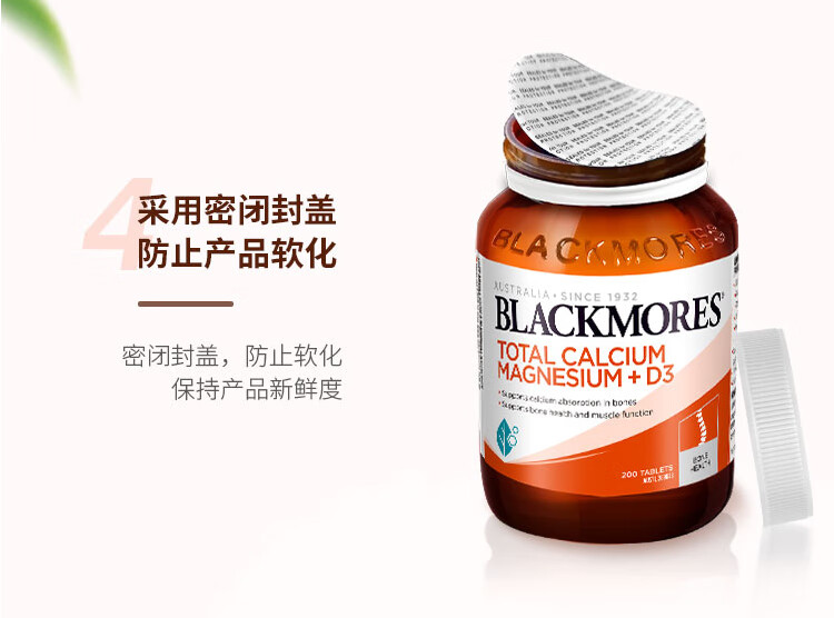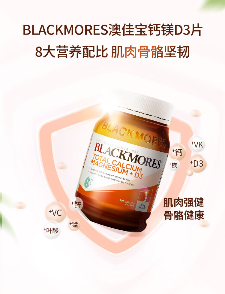Blackmores 澳佳宝活性钙镁加维生素D3片200粒【安琪全球购.保税仓直发】