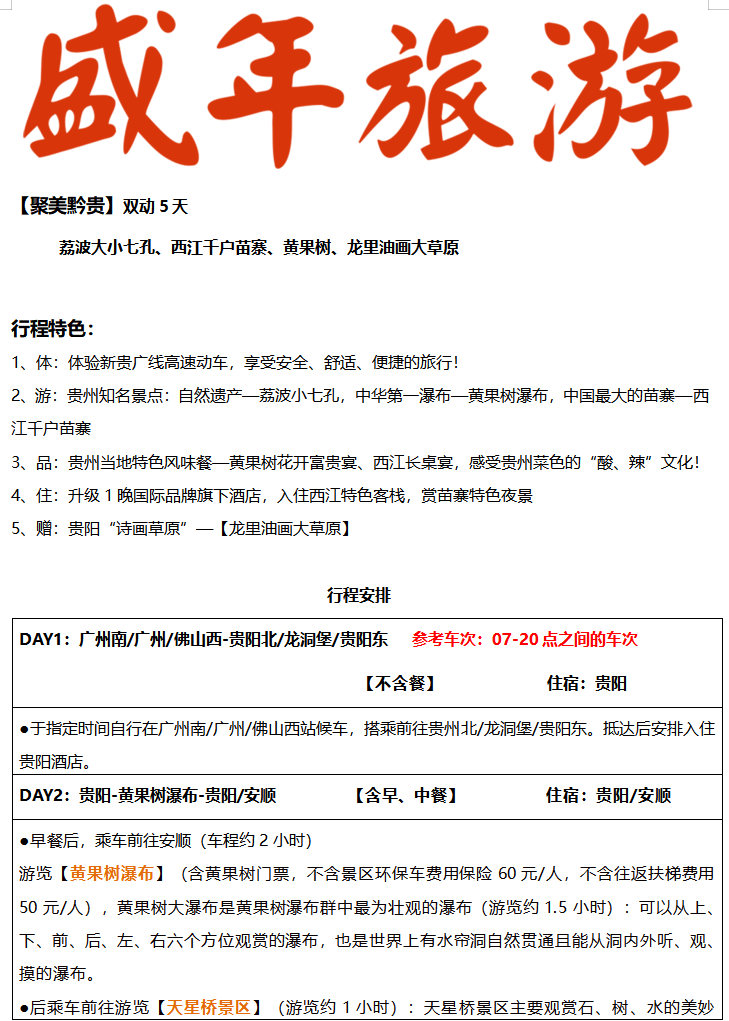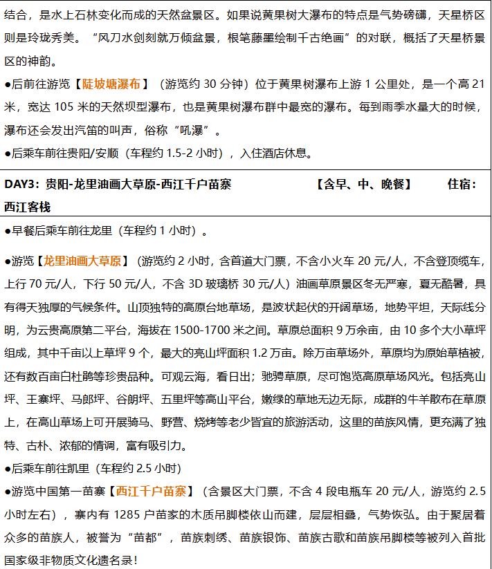 【聚美黔贵】双动5天 荔波大小七孔、西江千户苗寨、黄果树、龙里油画大草原