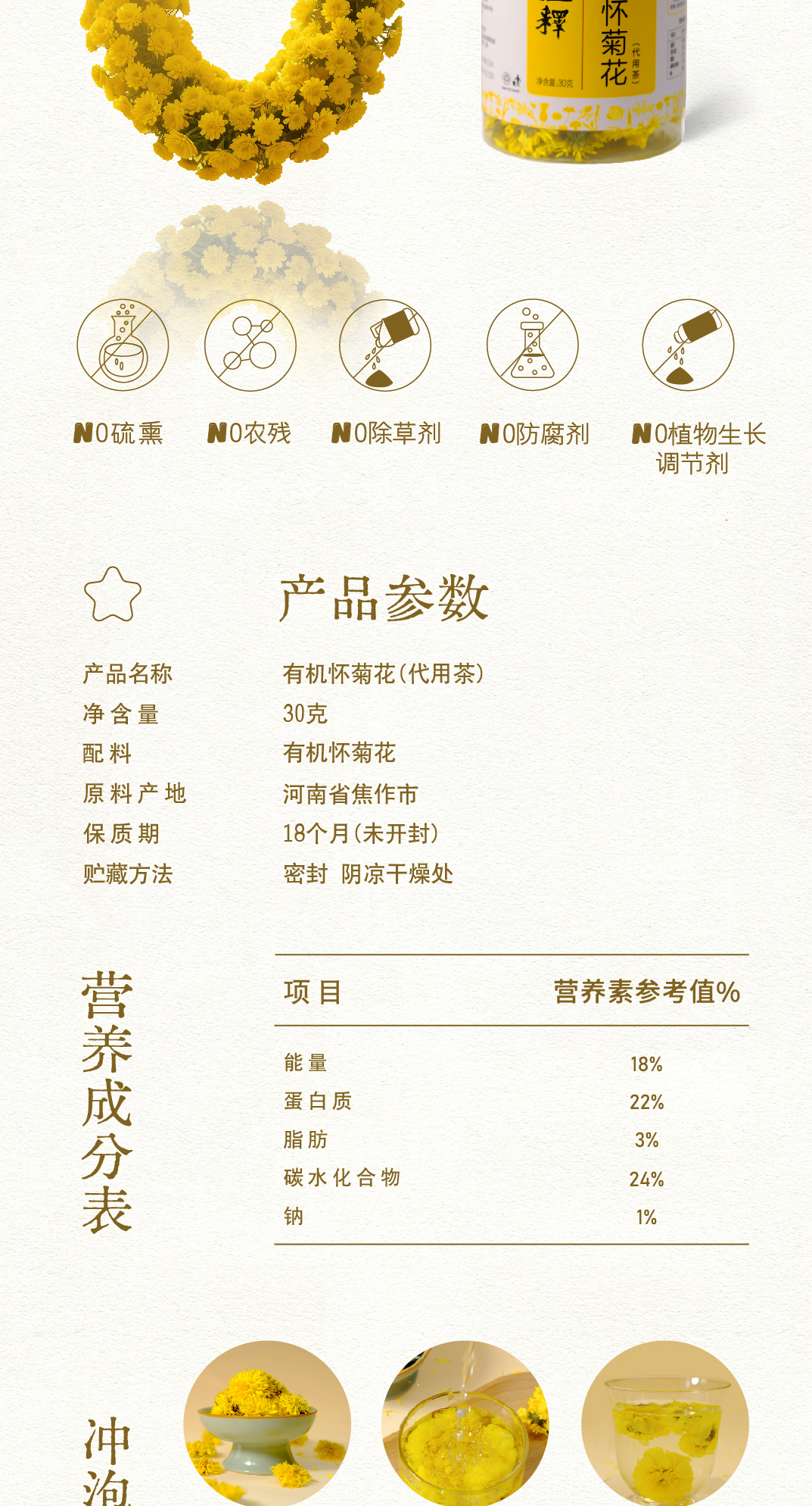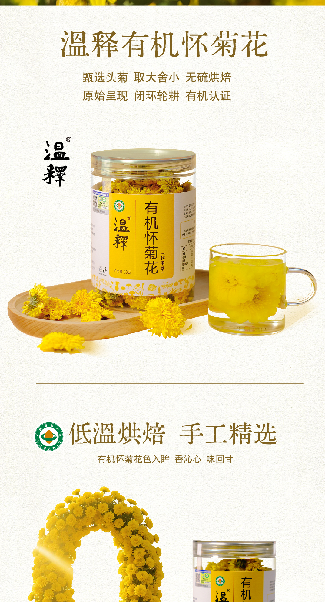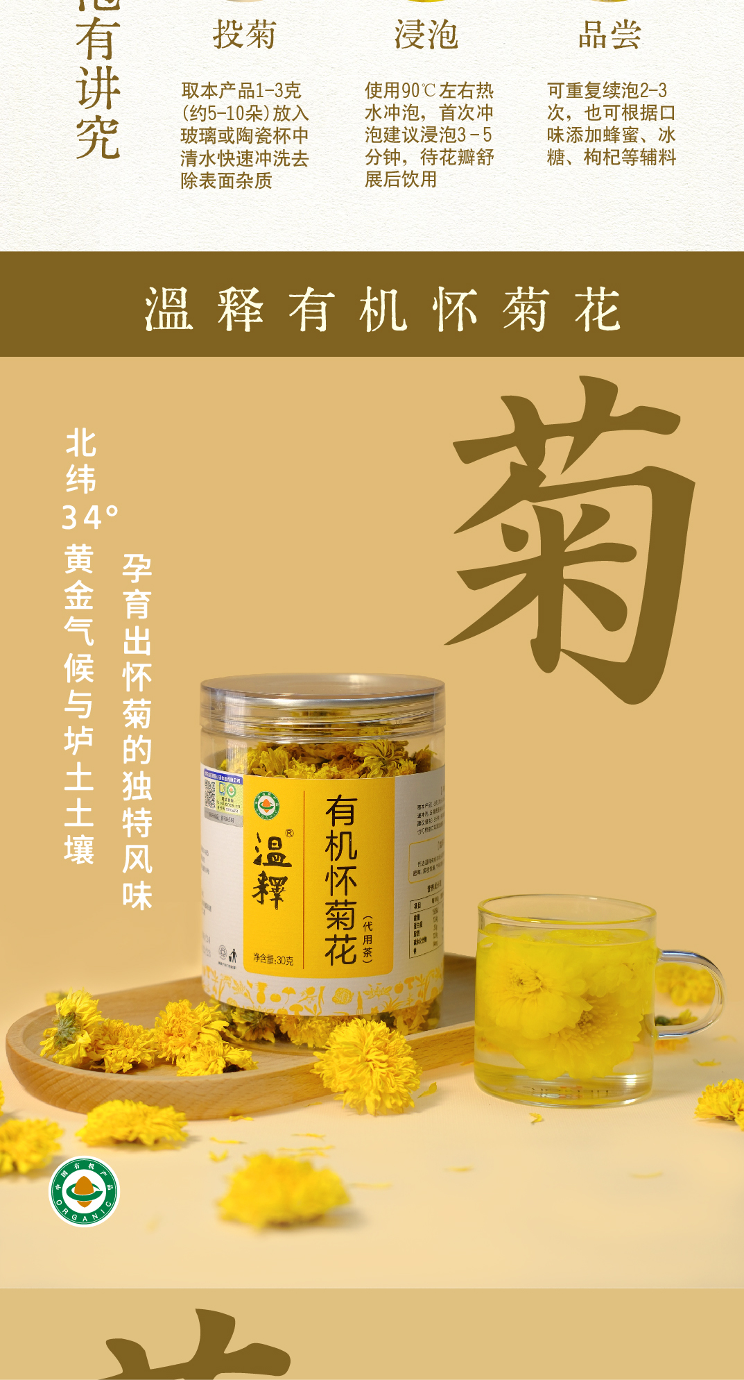 有机怀菊花 有机种值无农残无硫烘焙30克/瓶【京东快递送货上门】