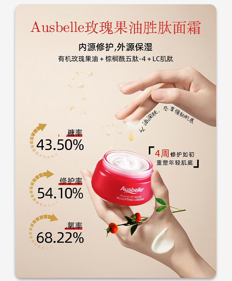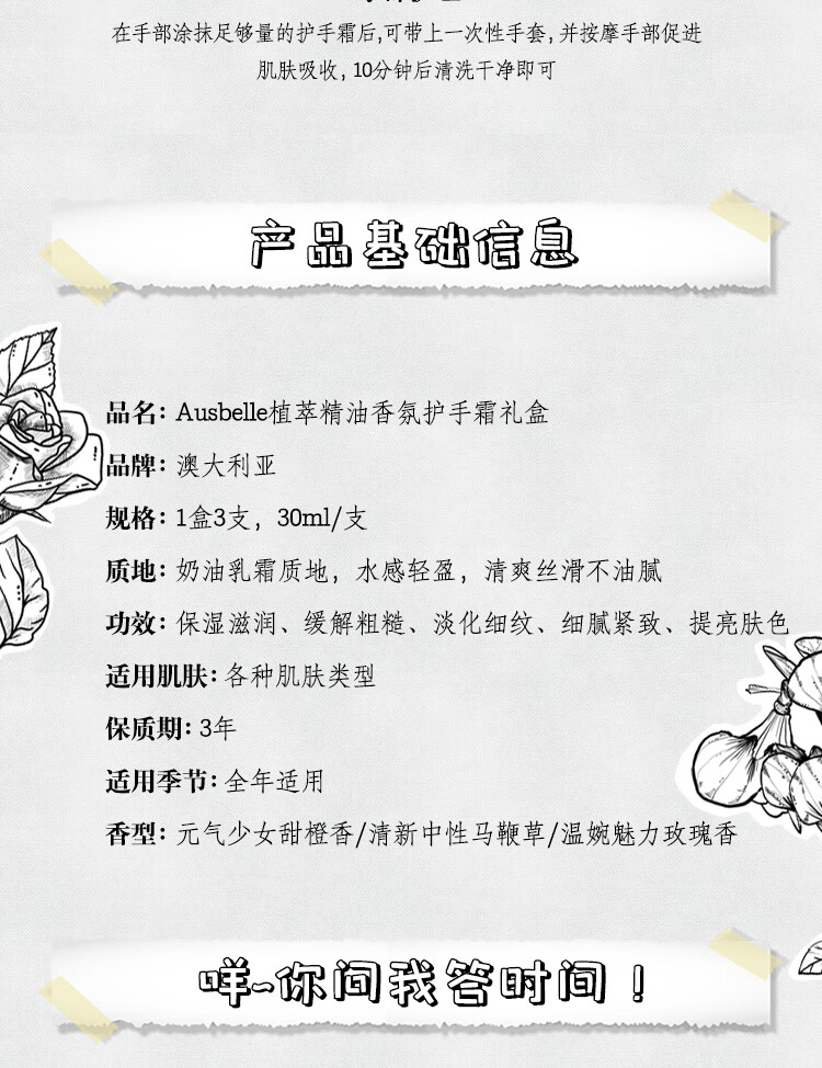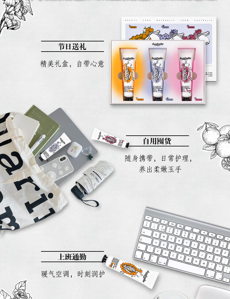 【海豚美购】Ausbelle植萃精油焕颜护手组合(四效合一面霜80g*1+面部护理级精油护手霜(30ml/支*3)盒*1)