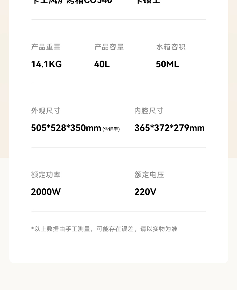 【蒸汽喷雾】卡士540风炉烤箱带蒸汽喷雾烘焙专用40升家用小型烘焙发酵蒸烤箱