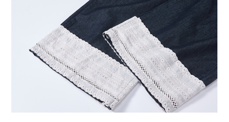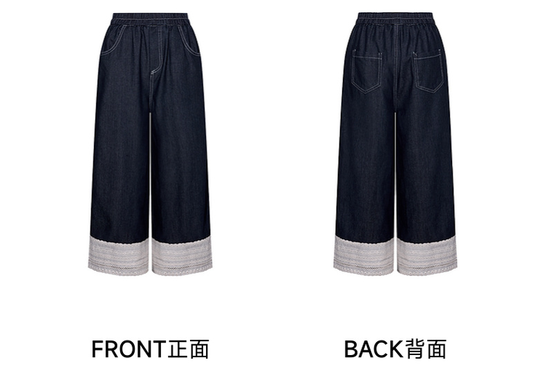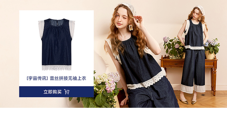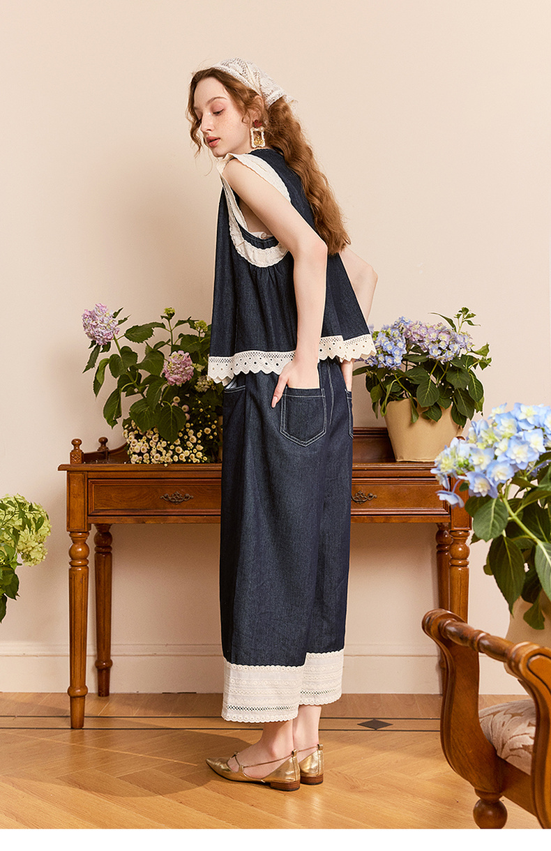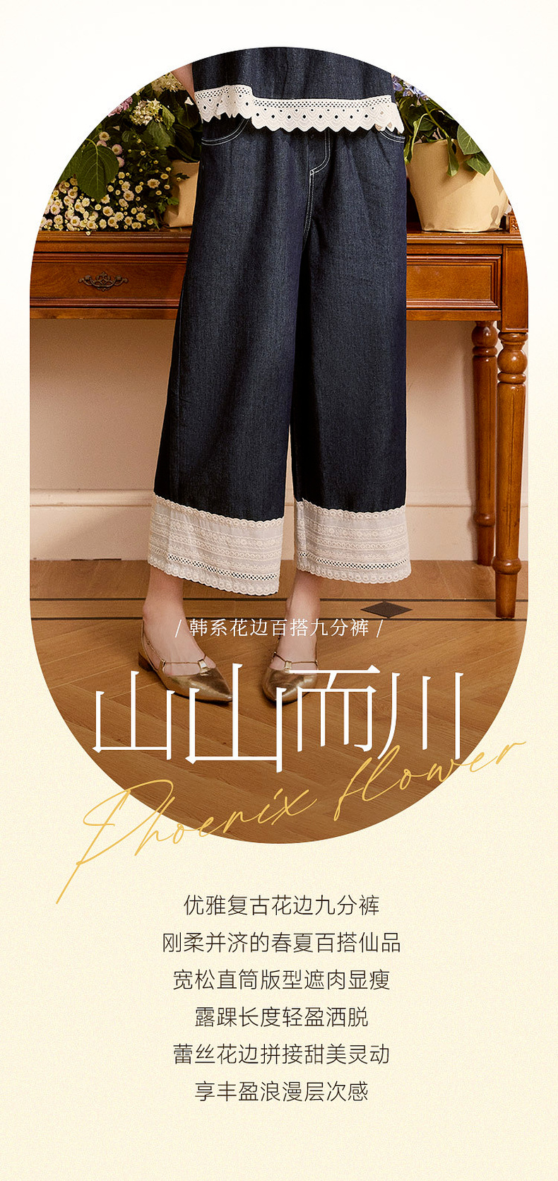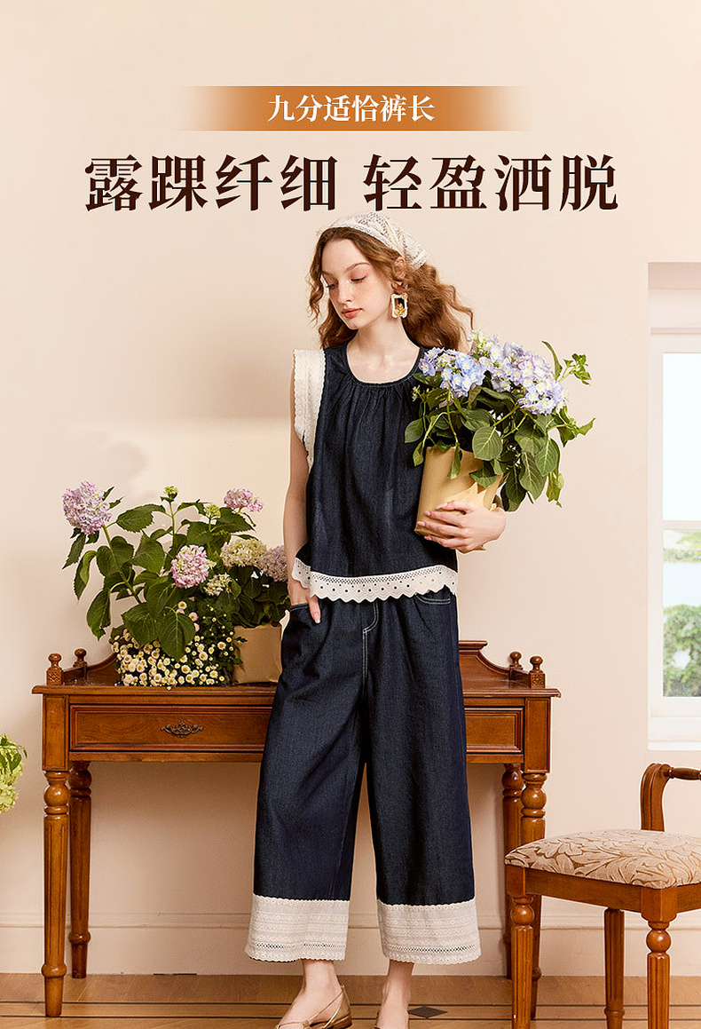 两三事 山山而川 2024夏季新款复古蕾丝拼接高腰直筒休闲裤女