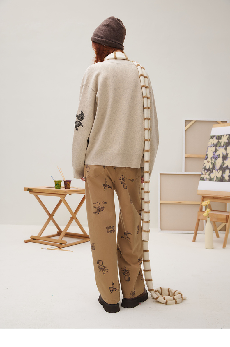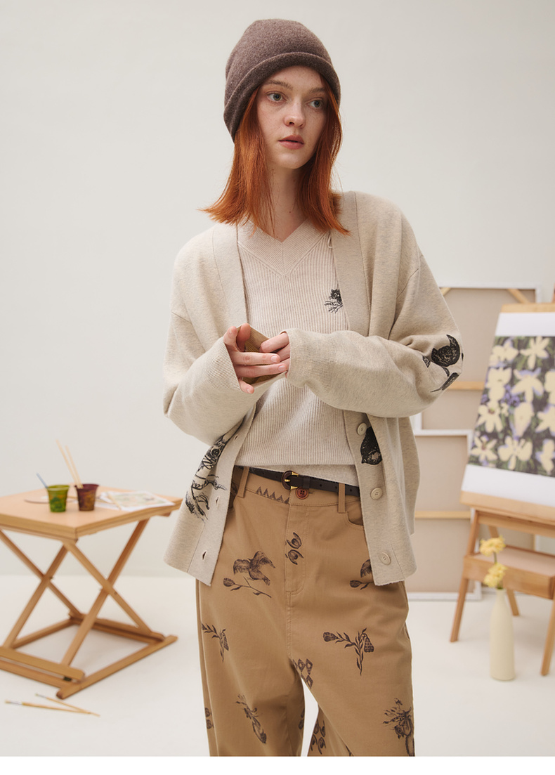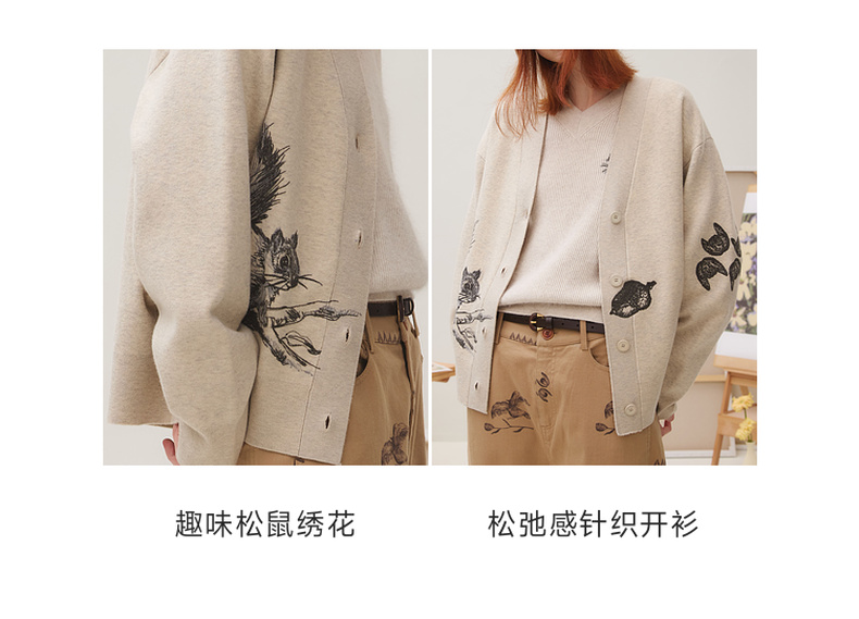 谜底针织开衫女2025秋季新品原创绣花慵懒百搭舒适毛衣253MZ1370