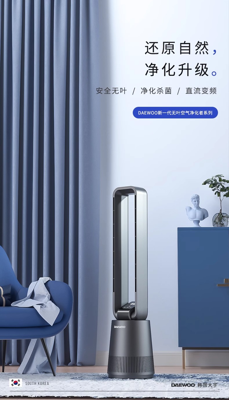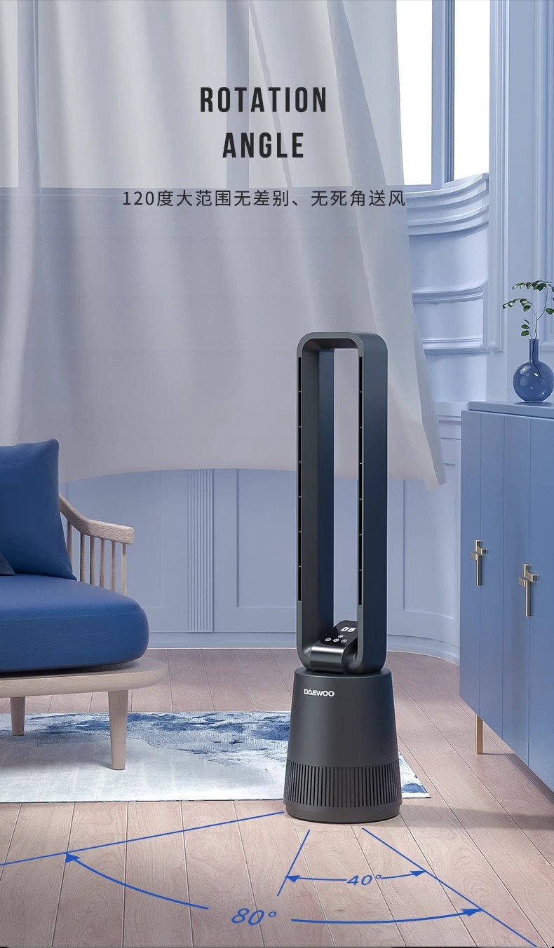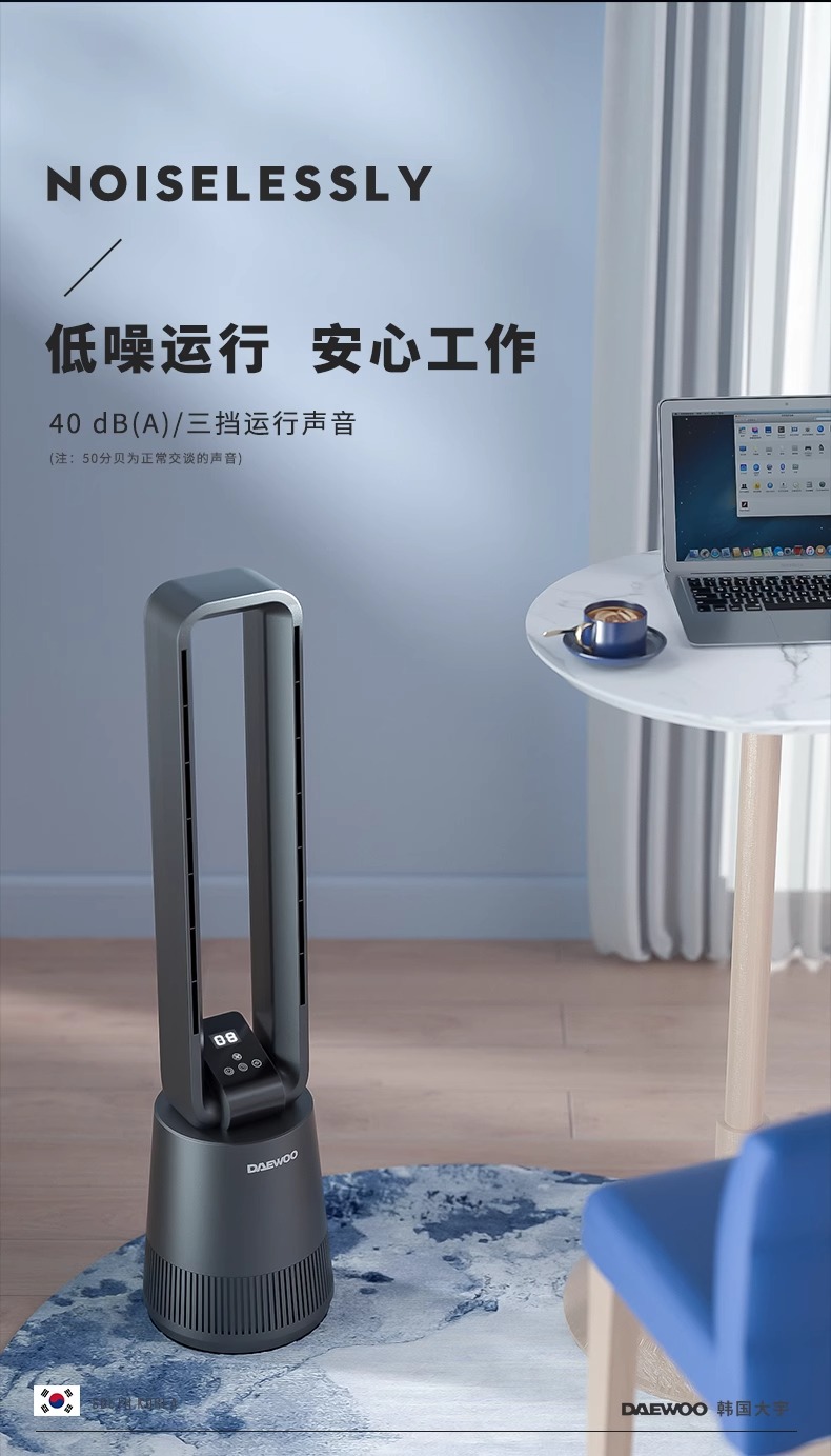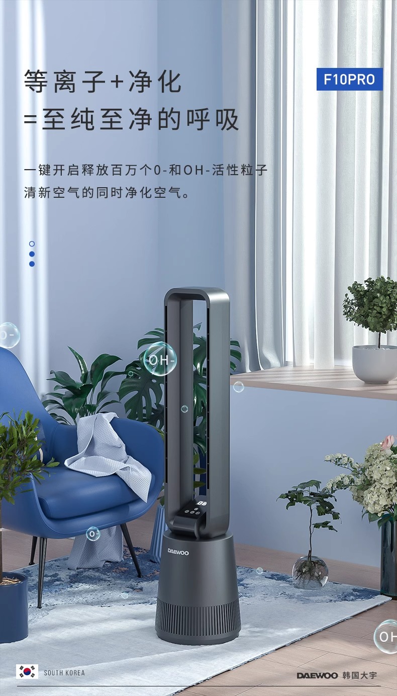 【小家电】大宇(DAEWOO)韩国大宇无叶风扇空气净化扇节能低噪电扇落地扇家用立式塔扇遥控 F10PRO HF