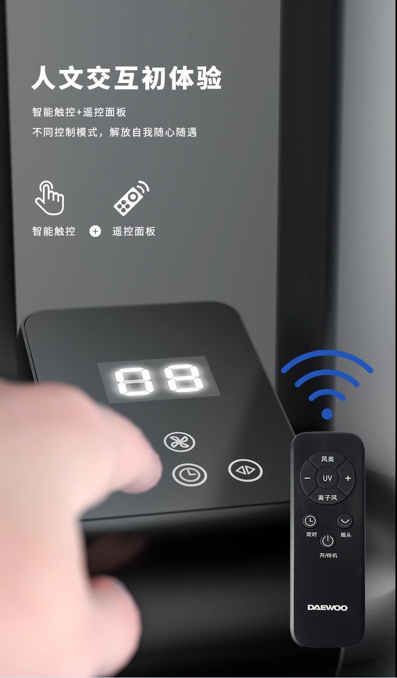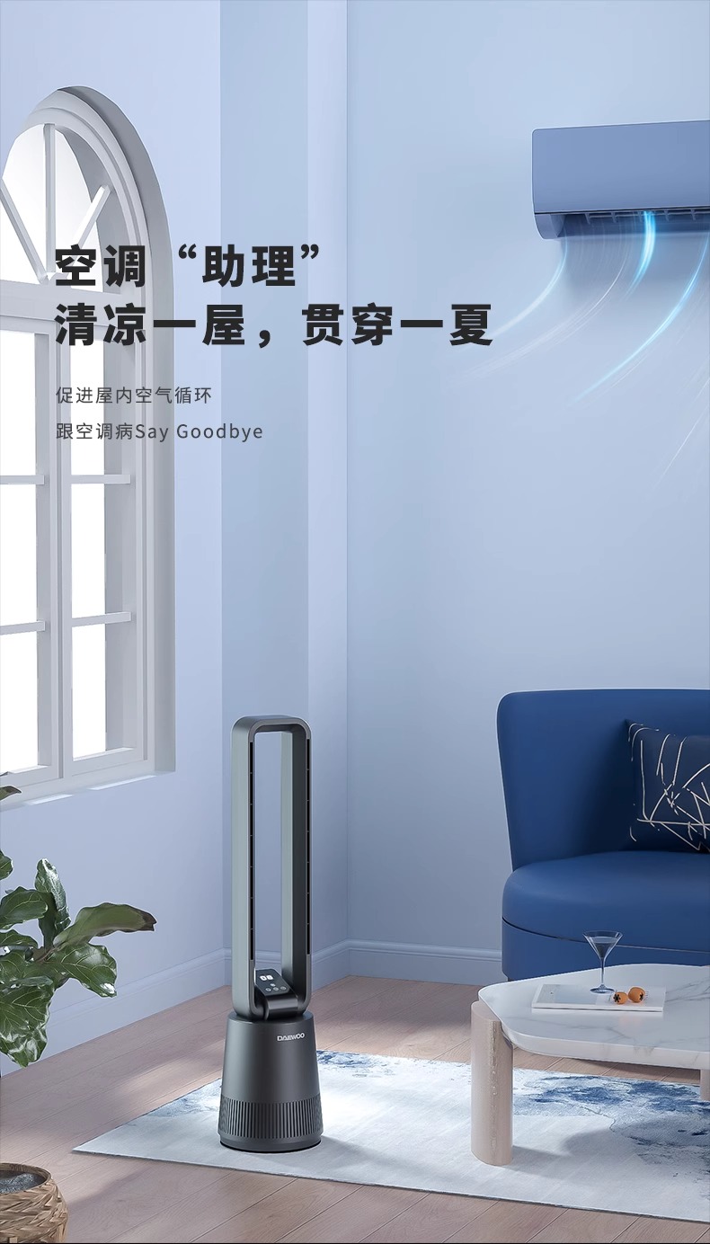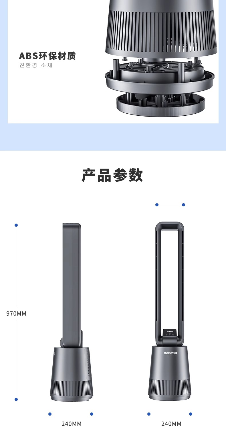 【小家电】大宇(DAEWOO)韩国大宇无叶风扇空气净化扇节能低噪电扇落地扇家用立式塔扇遥控 F10PRO HF