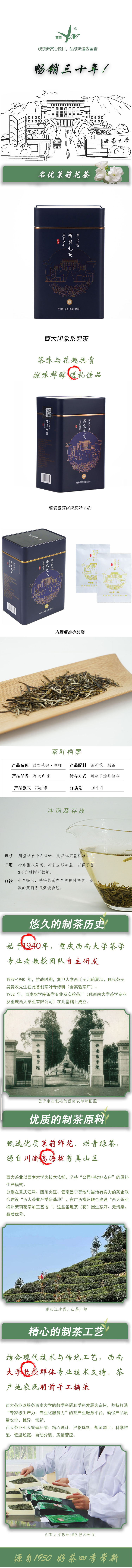 西南大学研制 西农茶叶 浓香型特级 茉莉花茶 袋装250克