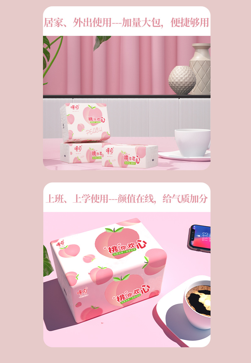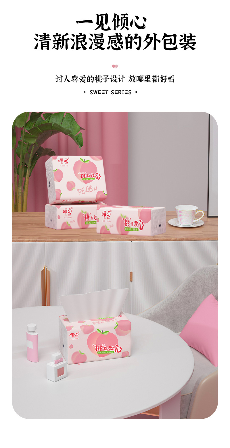 嘿叨 加厚柔韧原生木浆抽纸无香型 桃你喜欢抽纸便携4层加厚抽取式面巾纸卫生纸餐巾纸
