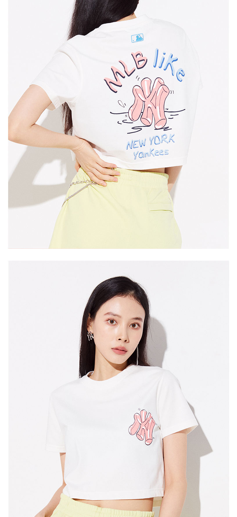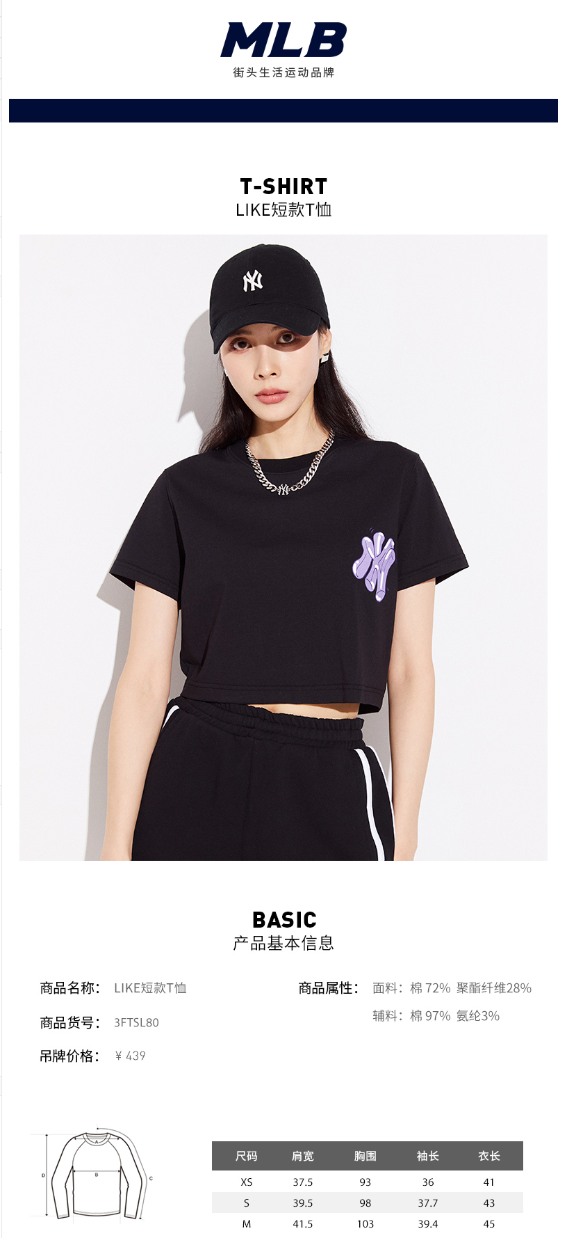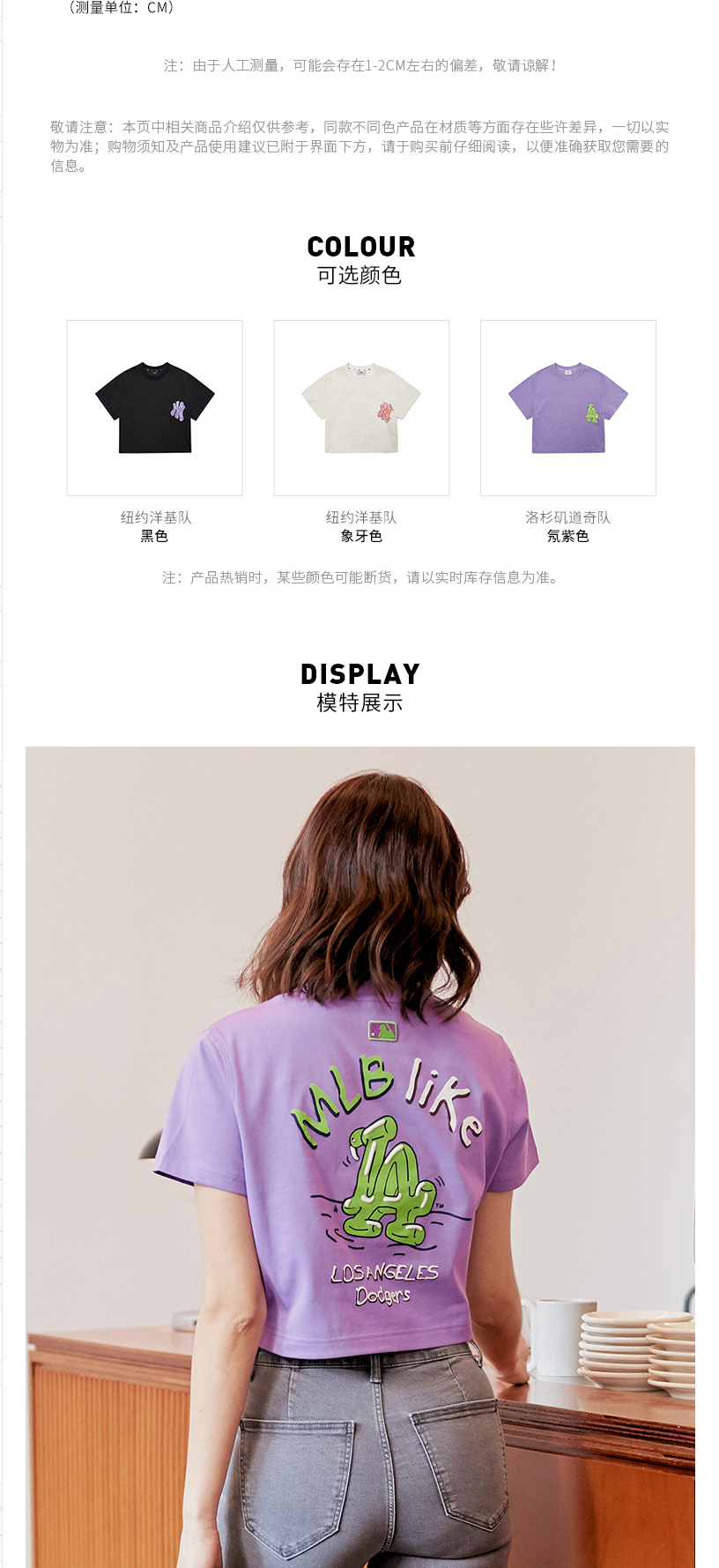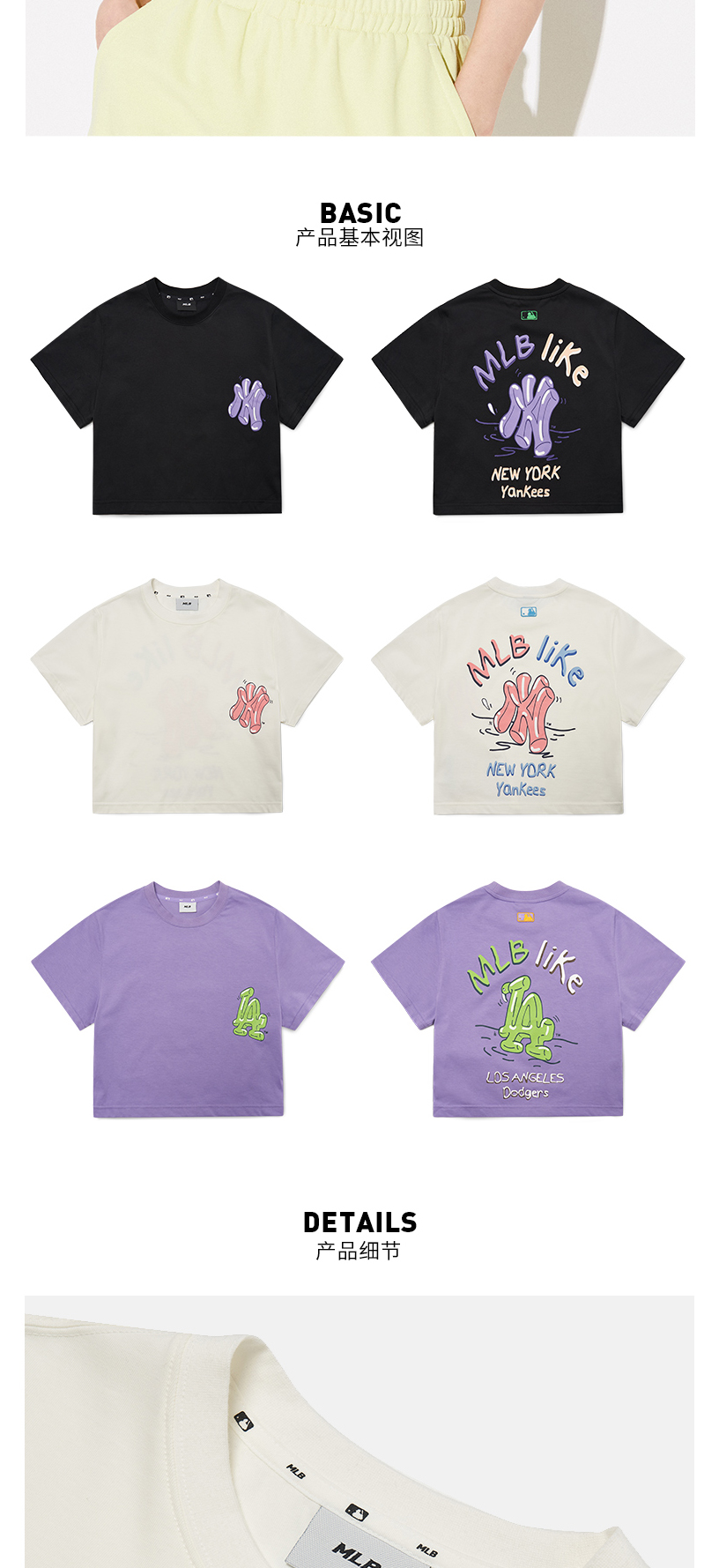 MLB女款T恤LIKE系列印花短袖宽松休闲短款潮22春夏新款3FTSL8023