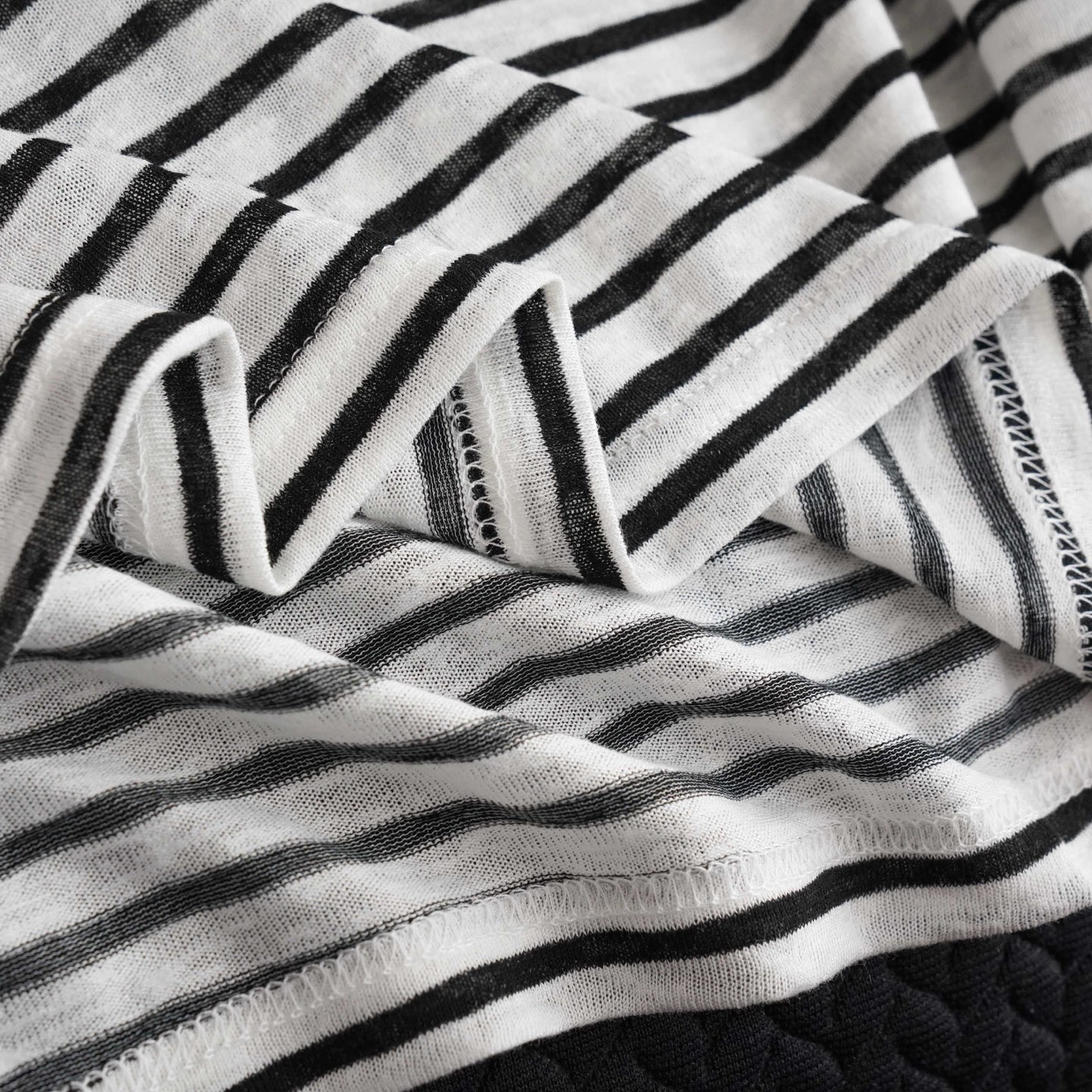 撞色罗纹镶边,圆领精调领圈