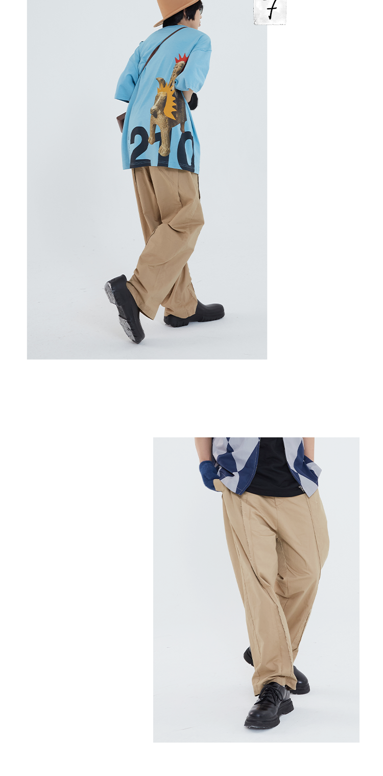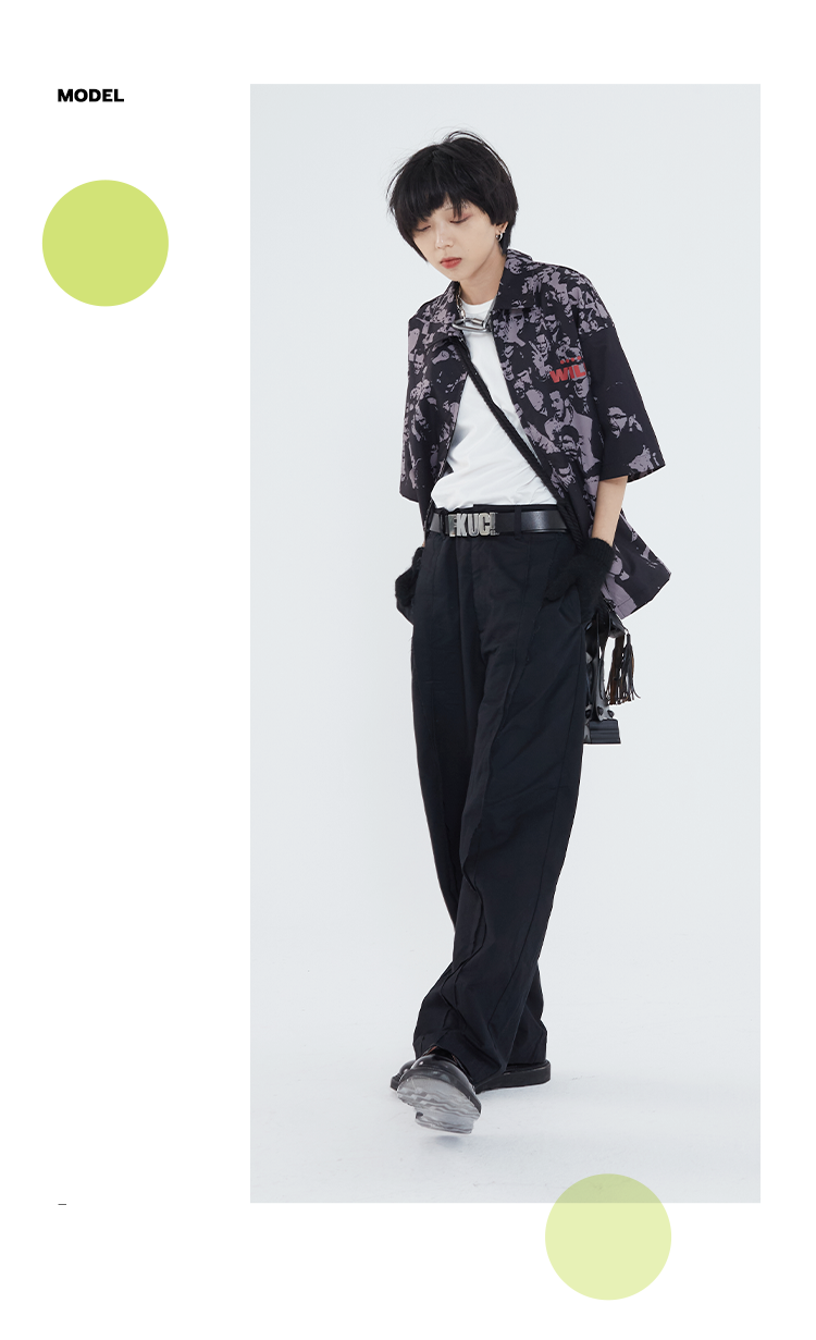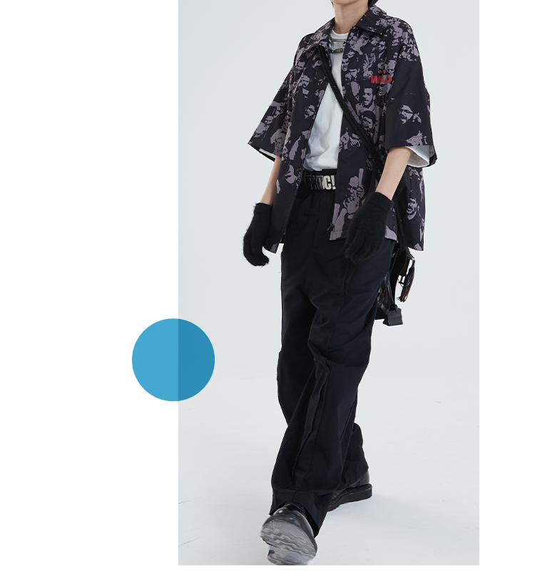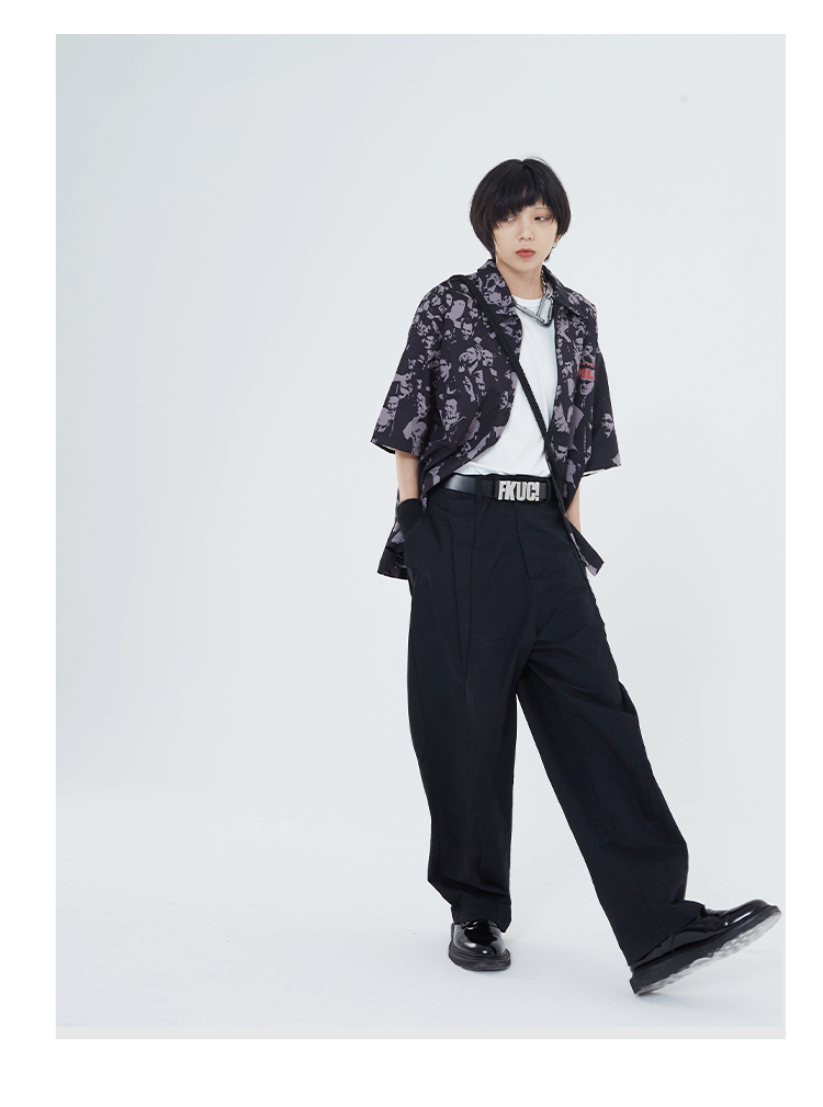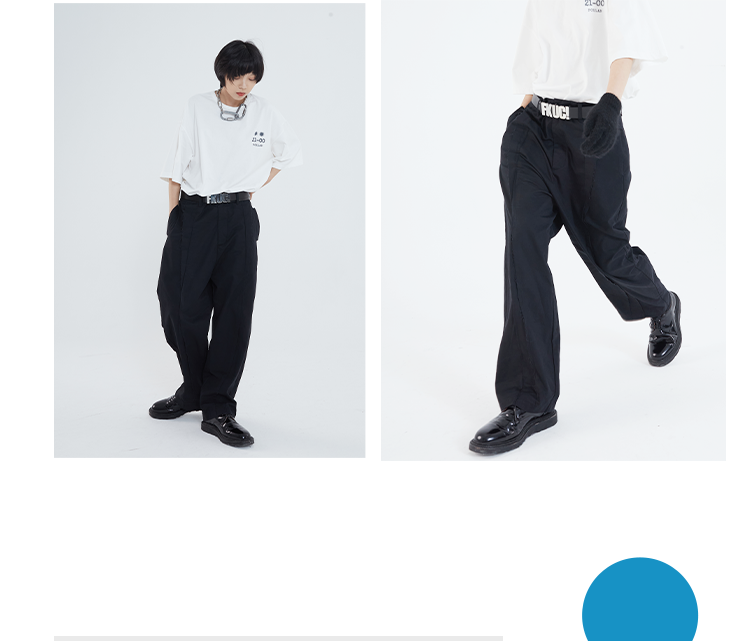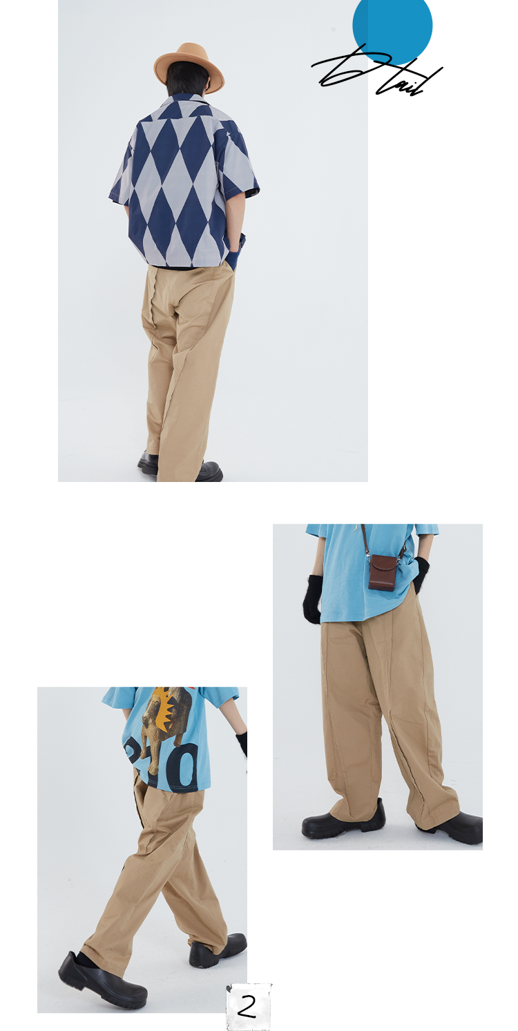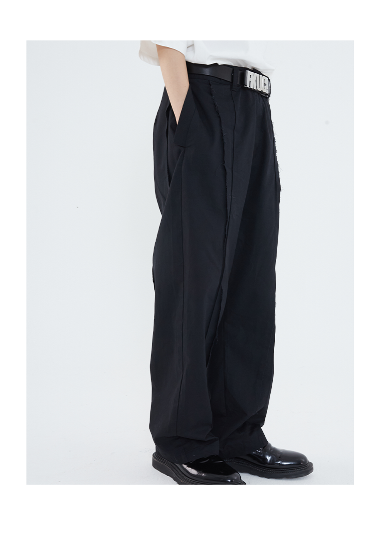 POH 褶皱须边破坏街头休闲裤宽松双色垂感纯色直筒阔腿长裤子男女