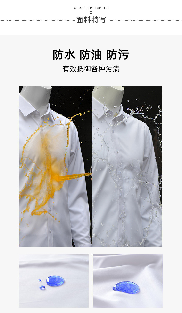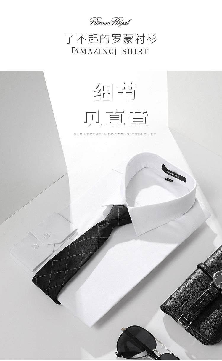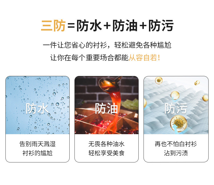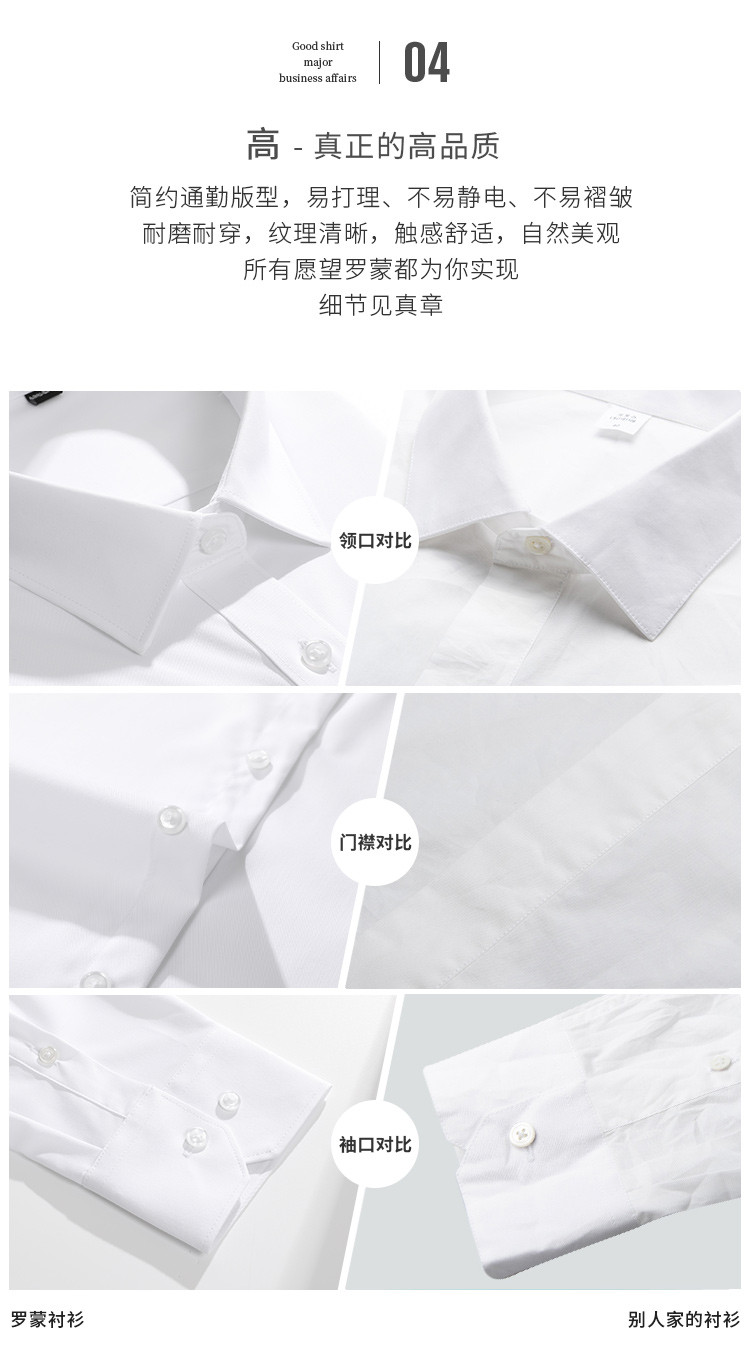 【防水防油防污】罗蒙男士衬衫经典纯色商务通勤百搭休闲三防长袖衬衫