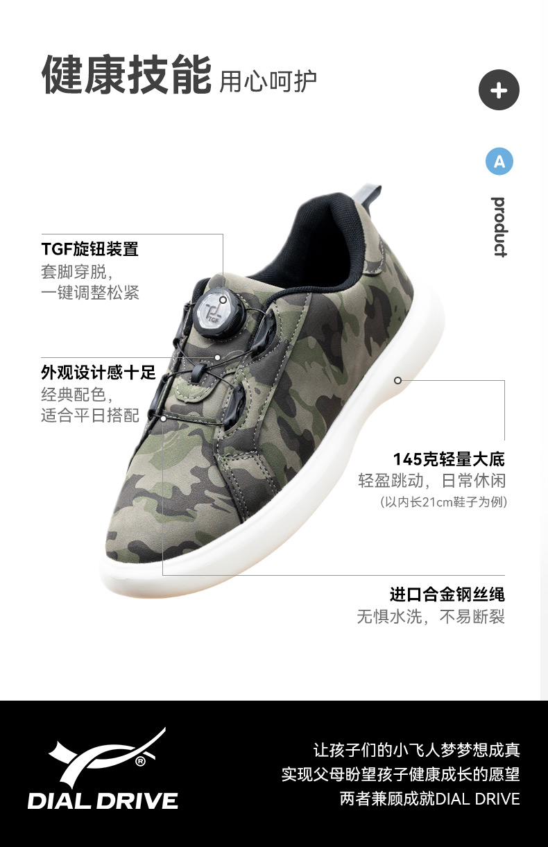 DIAL DRIVE日本儿童运动休闲鞋男女童街舞旋钮轻便板鞋秋季低帮鞋