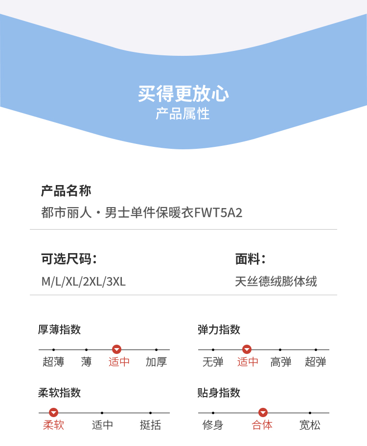 都市丽人都市锋尚保暖衣舒暖单件上衣天丝德绒膨体绒中厚男士保暖衣单件FWT5A2