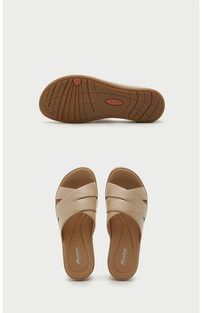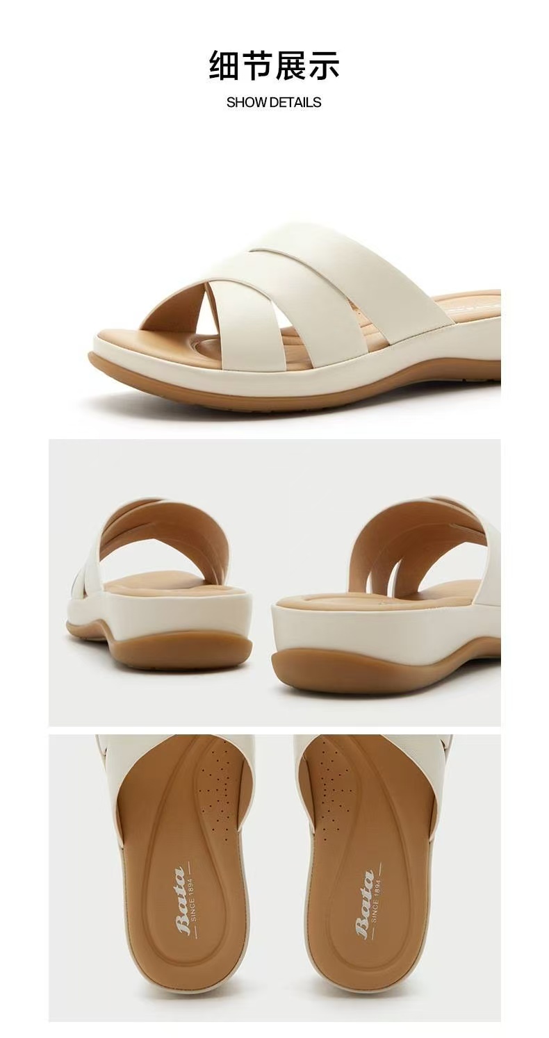 Bata 新款居家外穿舒适软底羊皮拖鞋一字拖 AVX12【男服】【广百北京路店】