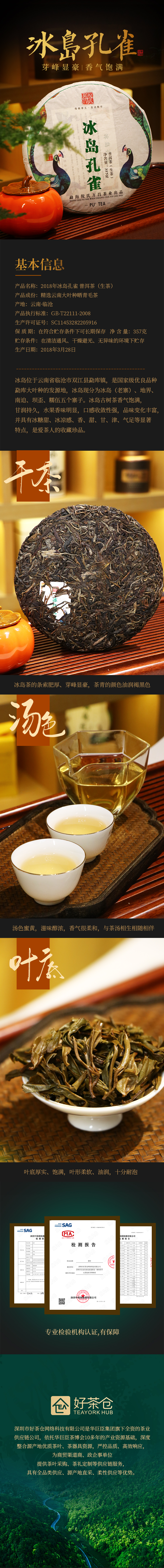 【香气饱满 甘润持久】倪氏万昌 2018年临沧冰岛孔雀 普洱生茶 357g/饼