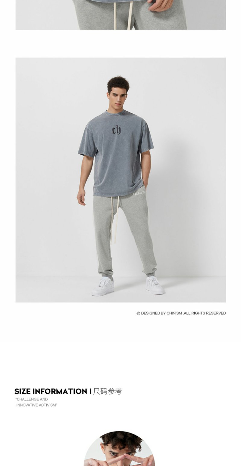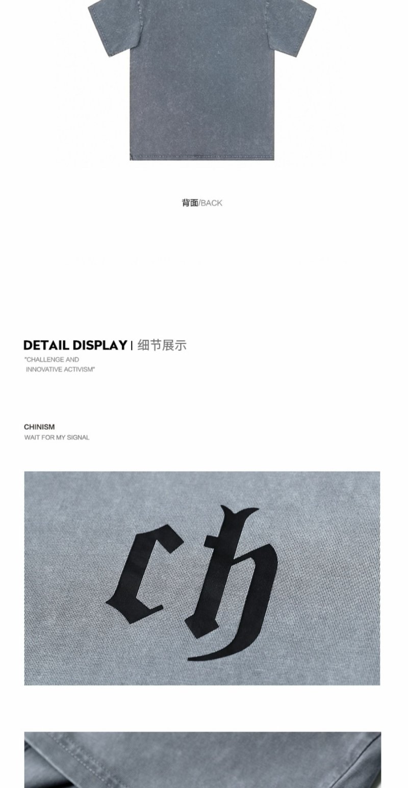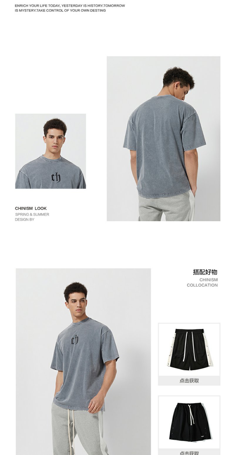 CHINISM 花灰色经典短袖t恤男潮牌欧美高街基础水洗做旧简约半袖