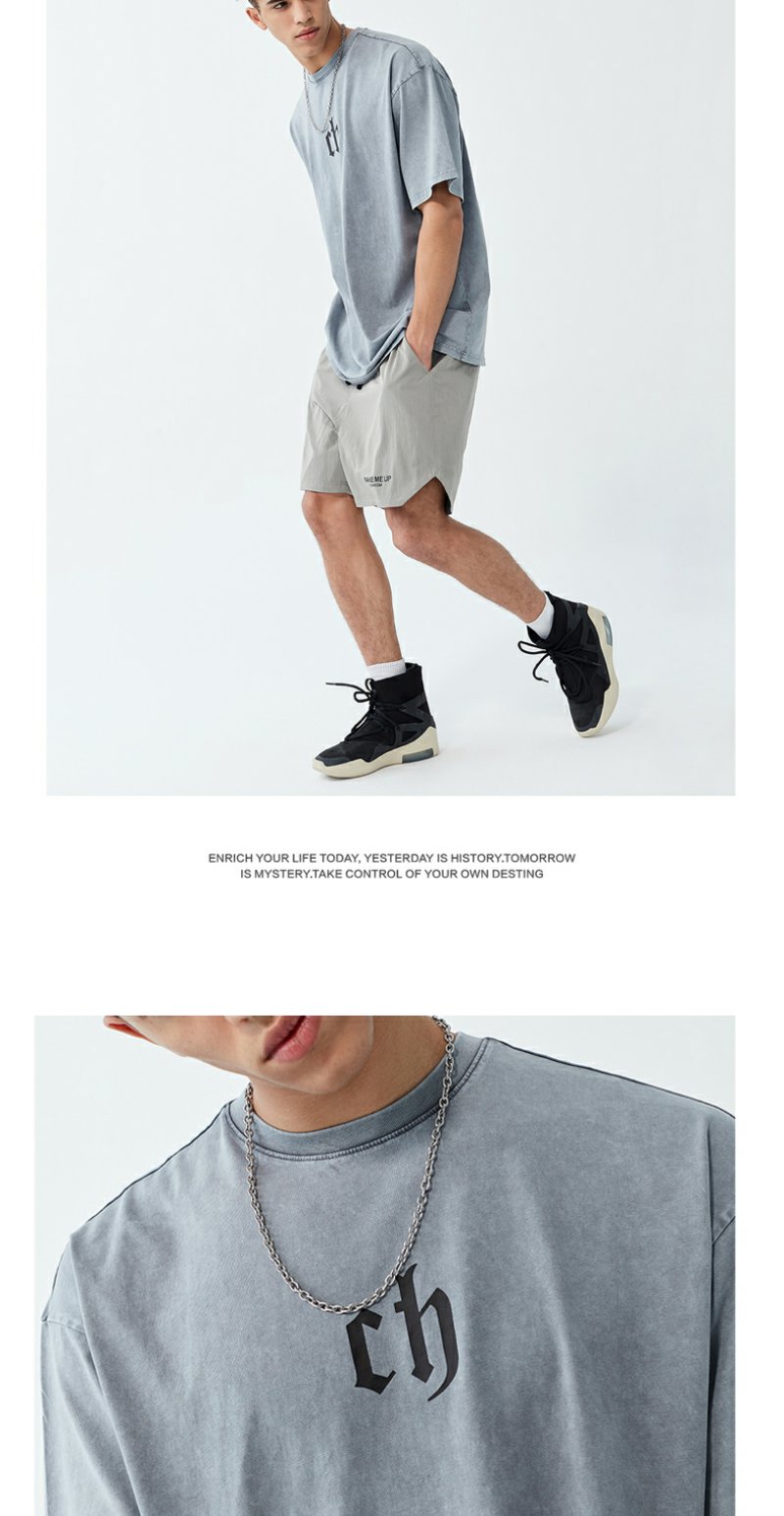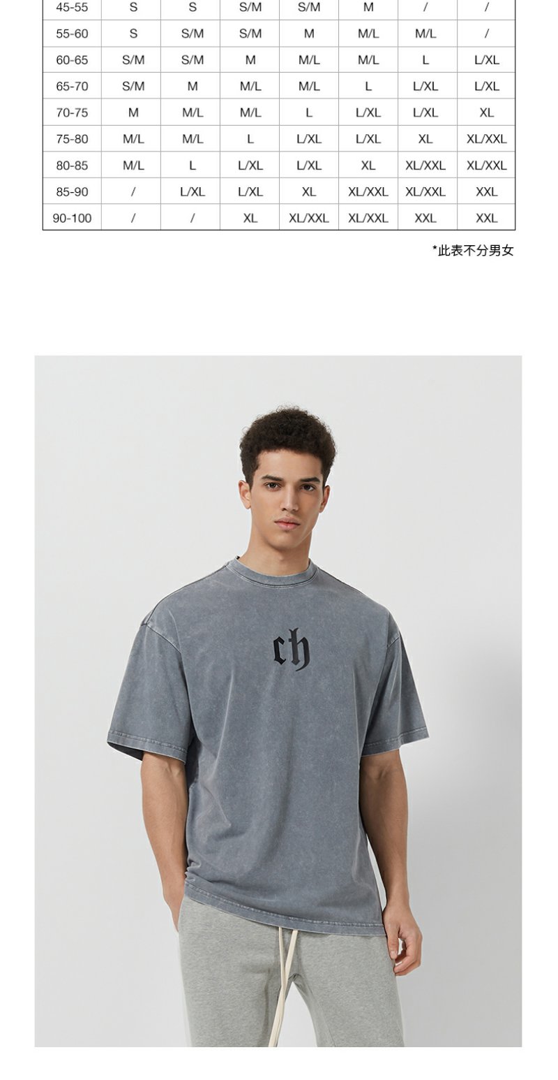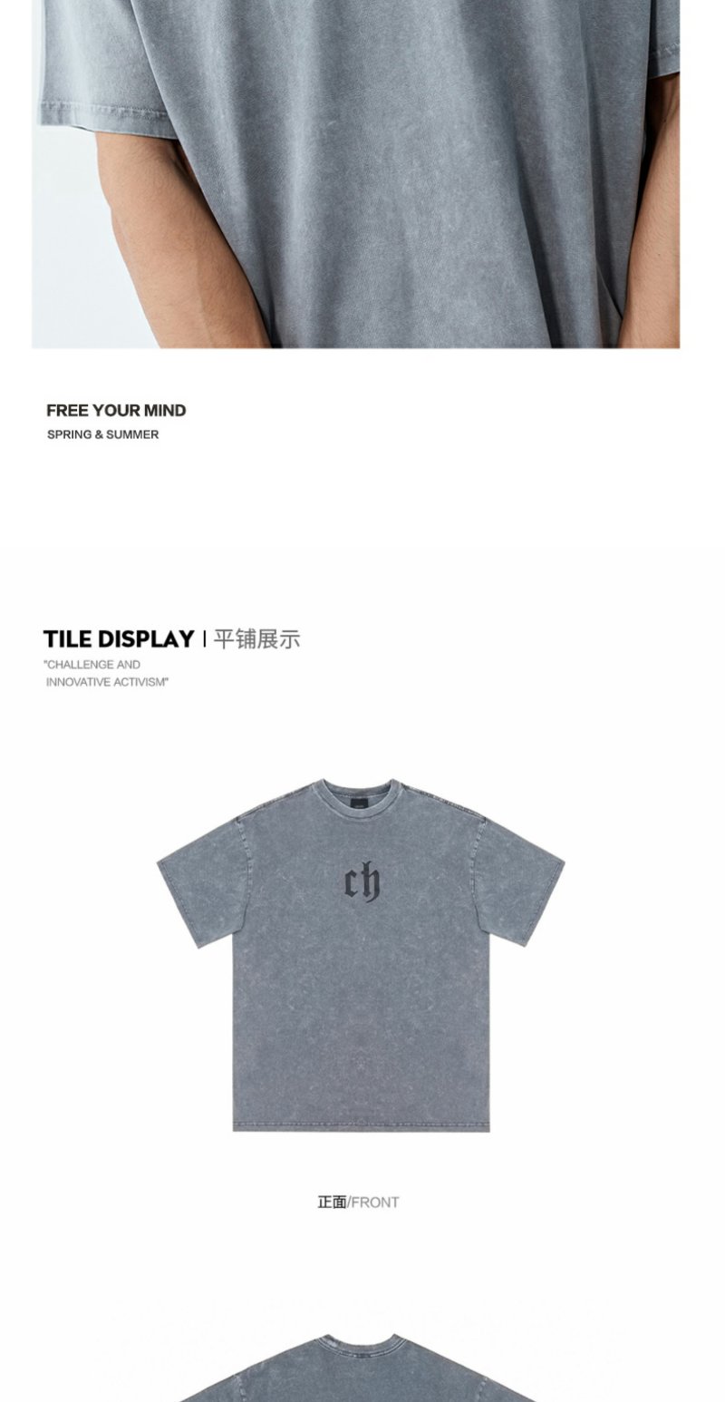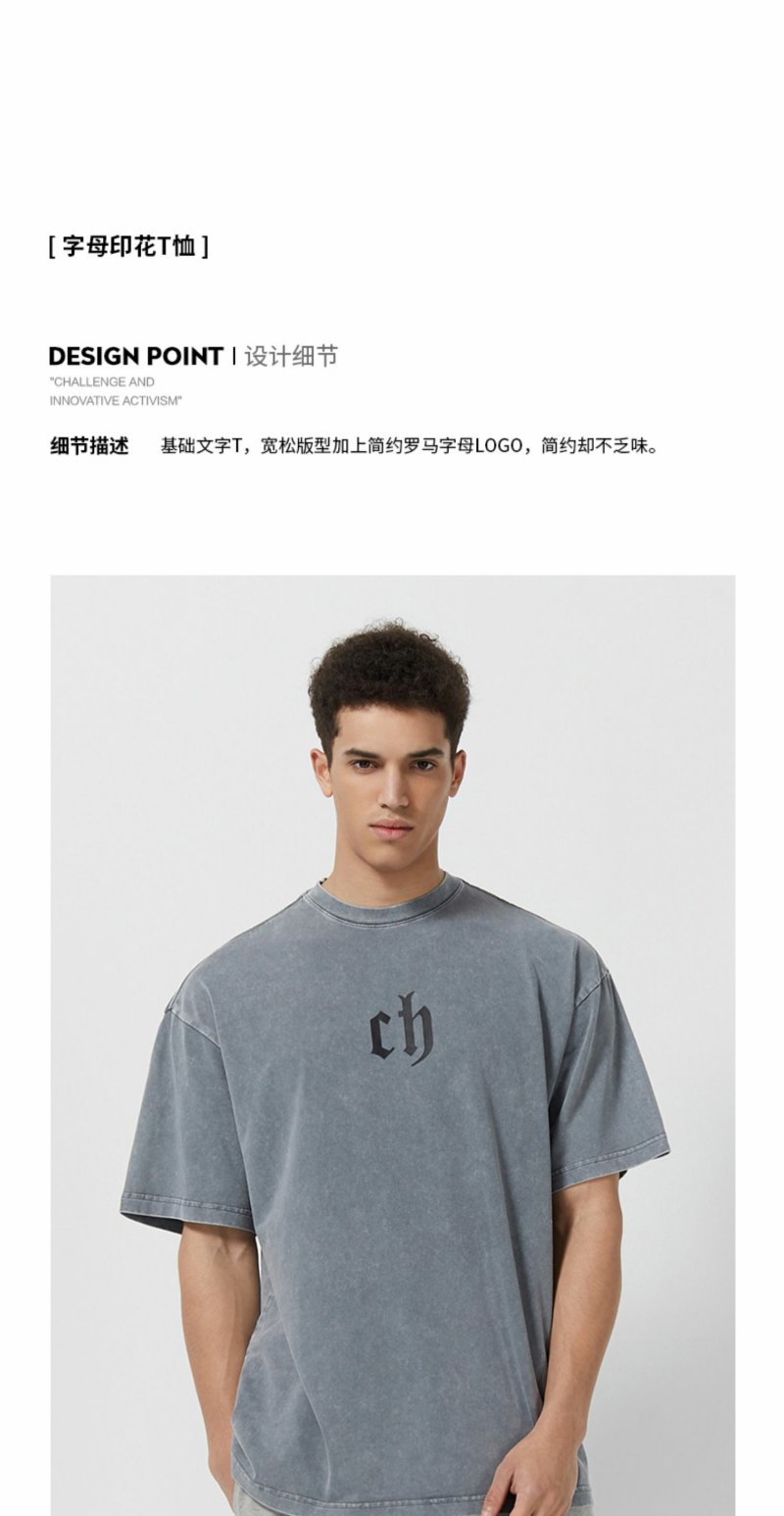CHINISM 花灰色经典短袖t恤男潮牌欧美高街基础水洗做旧简约半袖